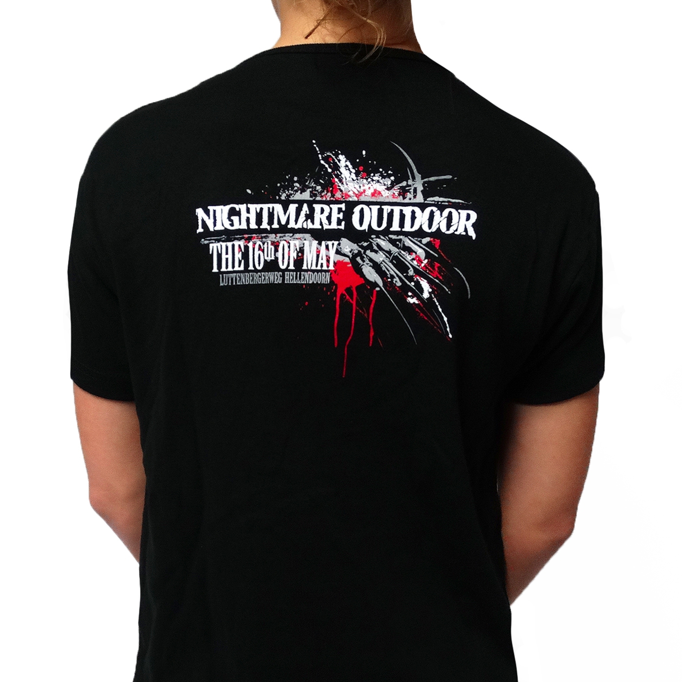 Black Nightmare Daylight lady shirt with print on the front and on the back.