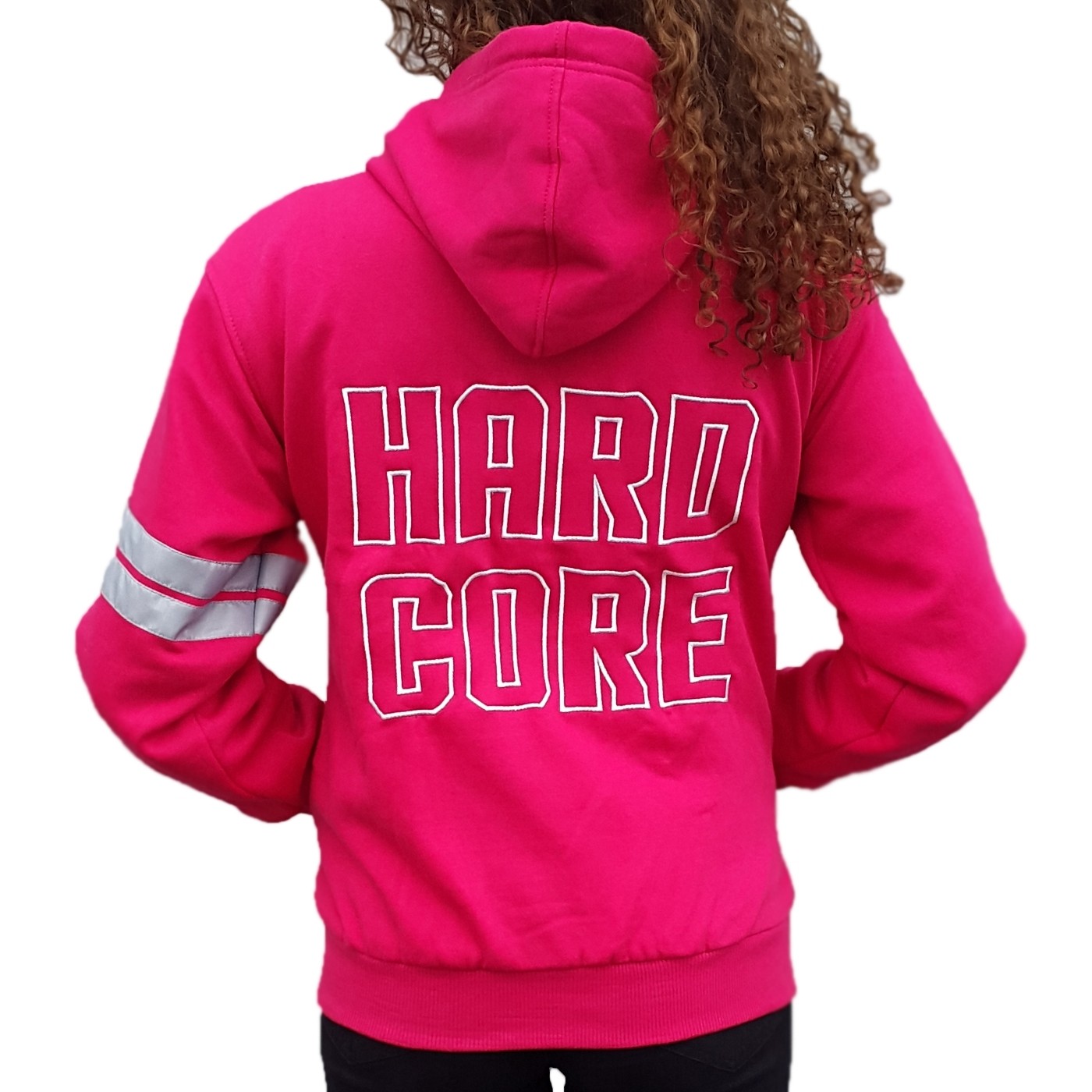 Hardcore Lady Hooded zipper Pink embroided. This lady hooded has a nice soft inside lining on the inside. All Hardcore logos are embroided. Here check the size chart for your size.