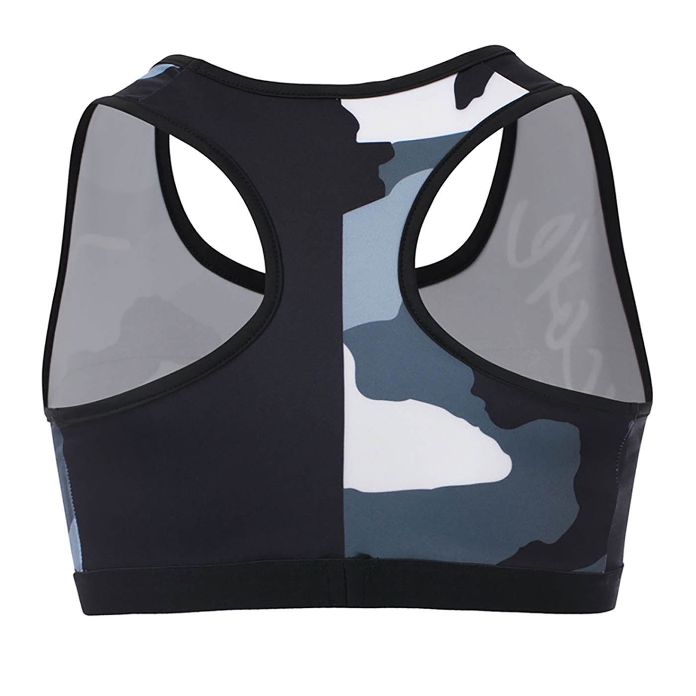 One half is black with the 100% Hardcore logo and the other half is gray / white camouflage print