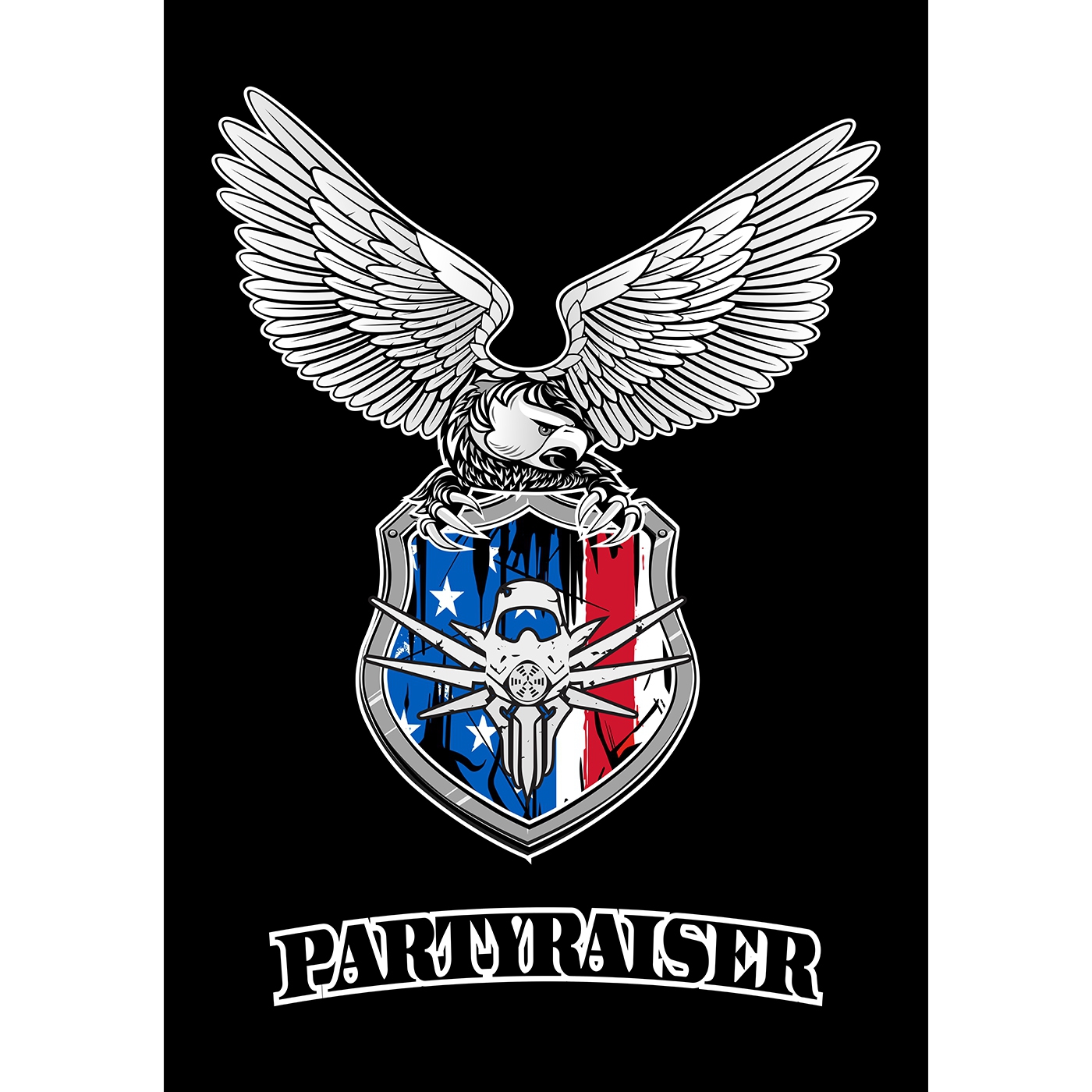 Full colour vertical Partyraiser Eagle flag. with the Partyraise...