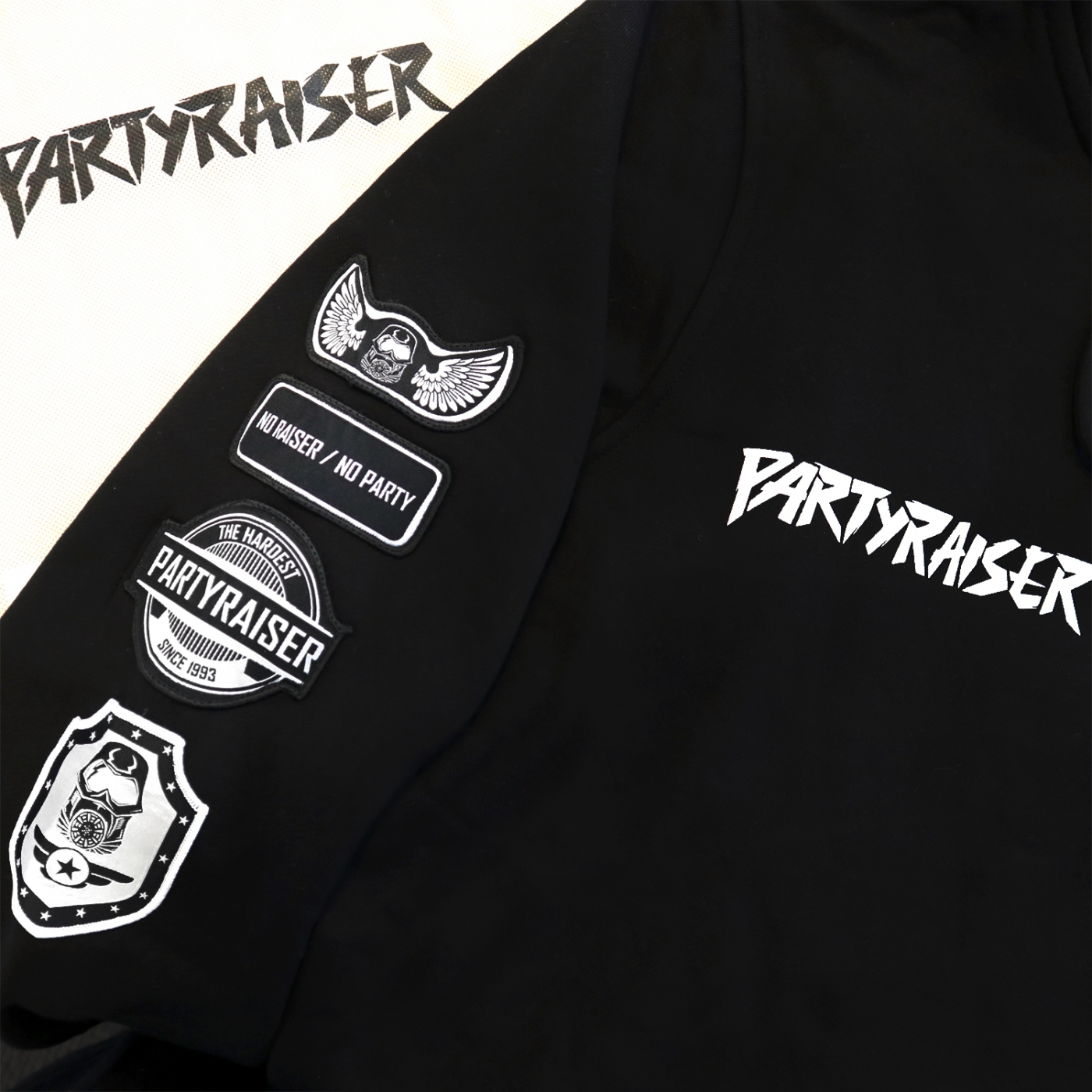 This Black Partyraiser hooded is with a red, black & white logo on the front, with exclusive patches on the sleeve and the Partyraiser logo embroided on the back, with blue customized inside. It comes with a customized Partyraiser plastic bag.