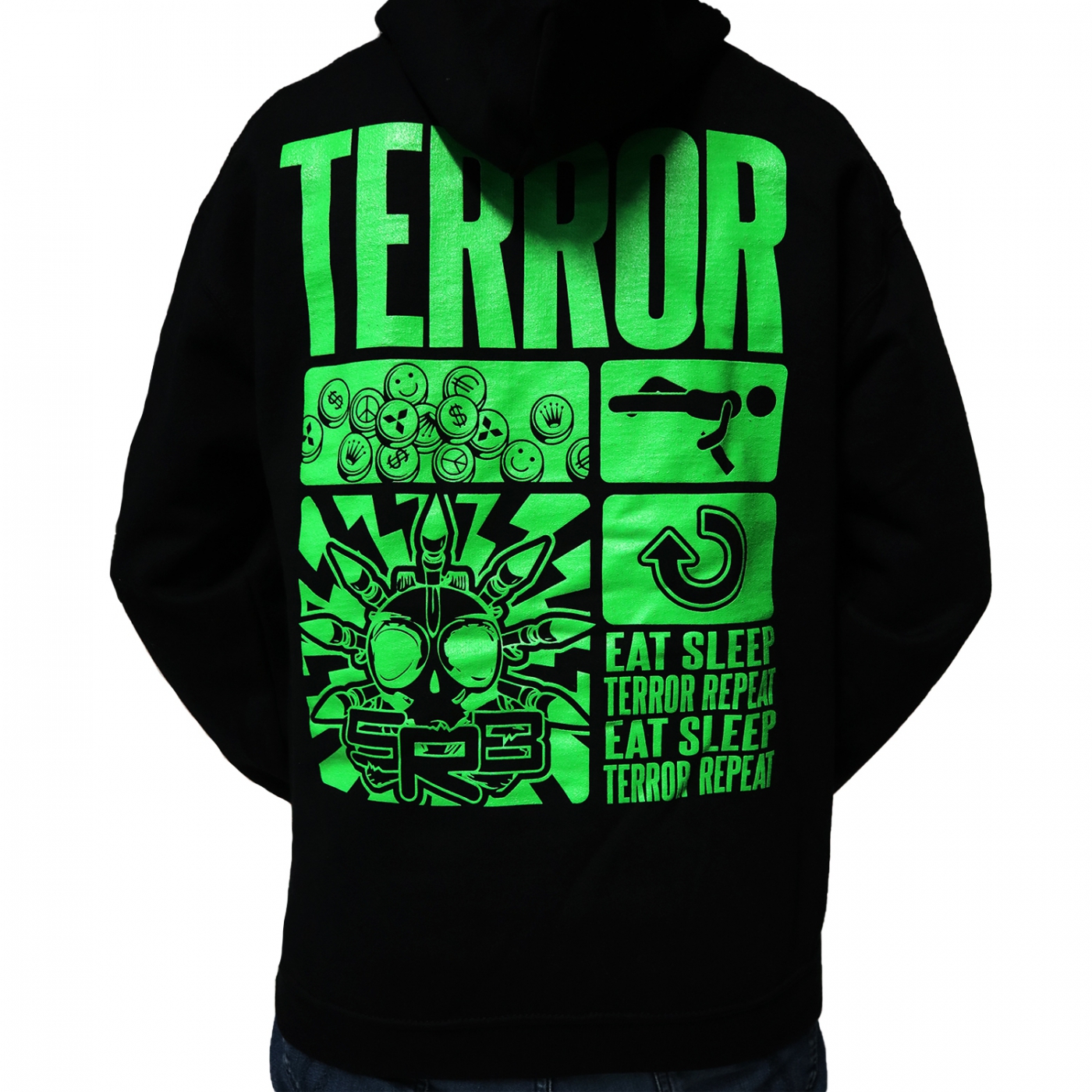 Black SRB hoodie. Green print on the front, on the back SRB, Terror and ''Eat Sleep Terror Repeat''