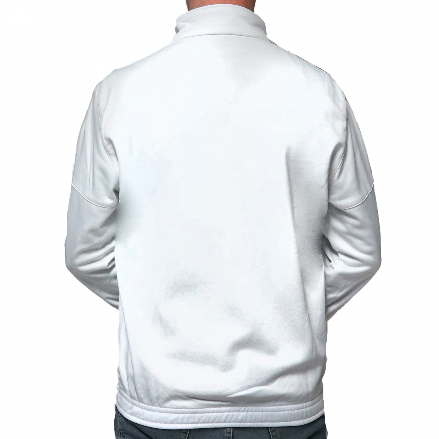 This white cardigan is of high quality and has a black colored block on front + black band / tape on the shoulders. It has the Australian logo on the front