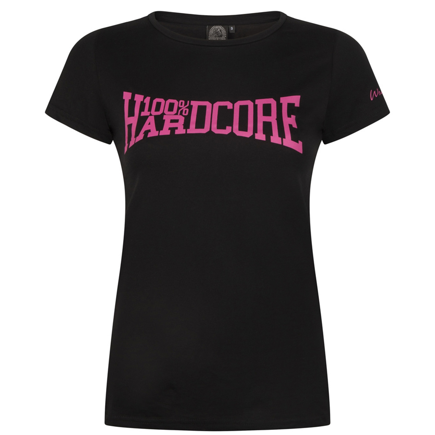 Shorts made by 100% Hardcore. These black pants have a black trim...