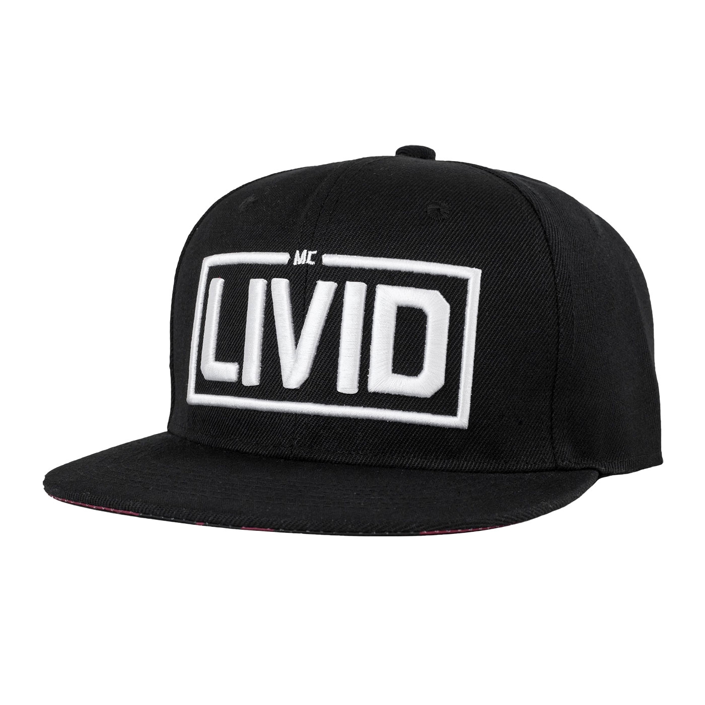 This cap is black with the MC Livid logo embroidered on the front and back.
