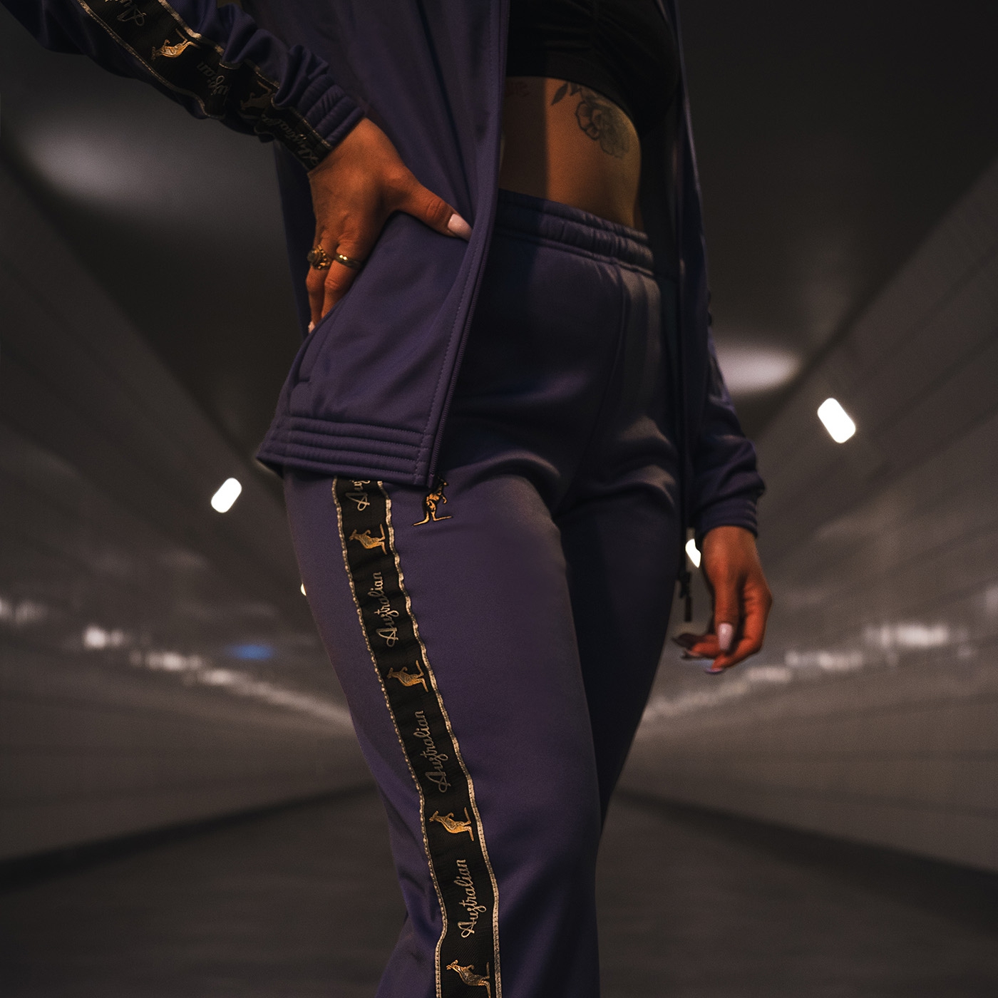 The Spring/Summer '24 Australian Acetate collection represents an even higher quality for your favorite Australian trousers or jacket. This Australian Fitted Jacket is produced in Italy and made of Acetate. Acetate is a combination of Polyamide (66%) and Polyester (34%), making both the exterior and interior of the jacket extra soft and incredibly comfortable to wear. A trim with gold kangaroos and silver lettering runs down the sleeves. The Australian kangaroo is embroidered in gold on the left chest. The high-quality zippers are equipped with original Australian zipper pullers. Elastic bands at the hem and cuffs ensure a secure fit. This unisex fitted jacket fits closer to the body than a regular fit jacket.