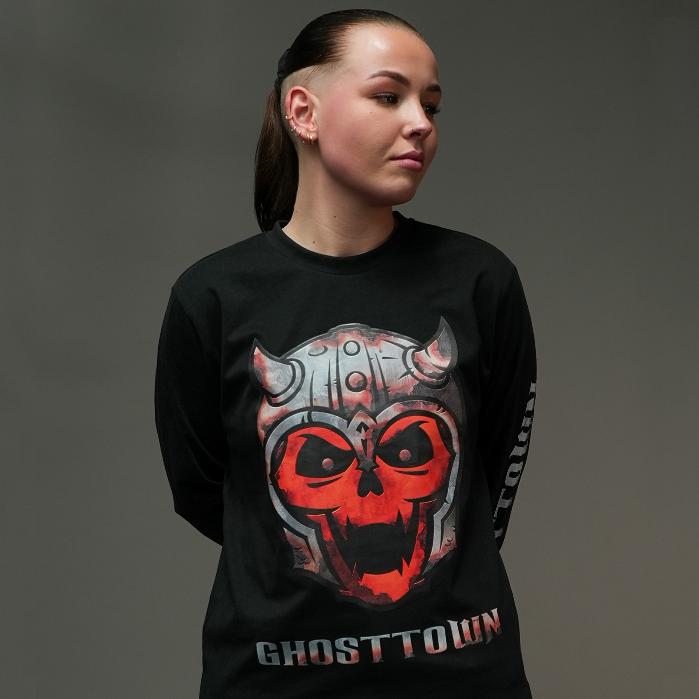 Big 2024 Ghosttown: The Rise of The Undead Army logo printed on the front. Small D2E logo on the back. Ghosttown inscription on the sleeve. Normal fit!