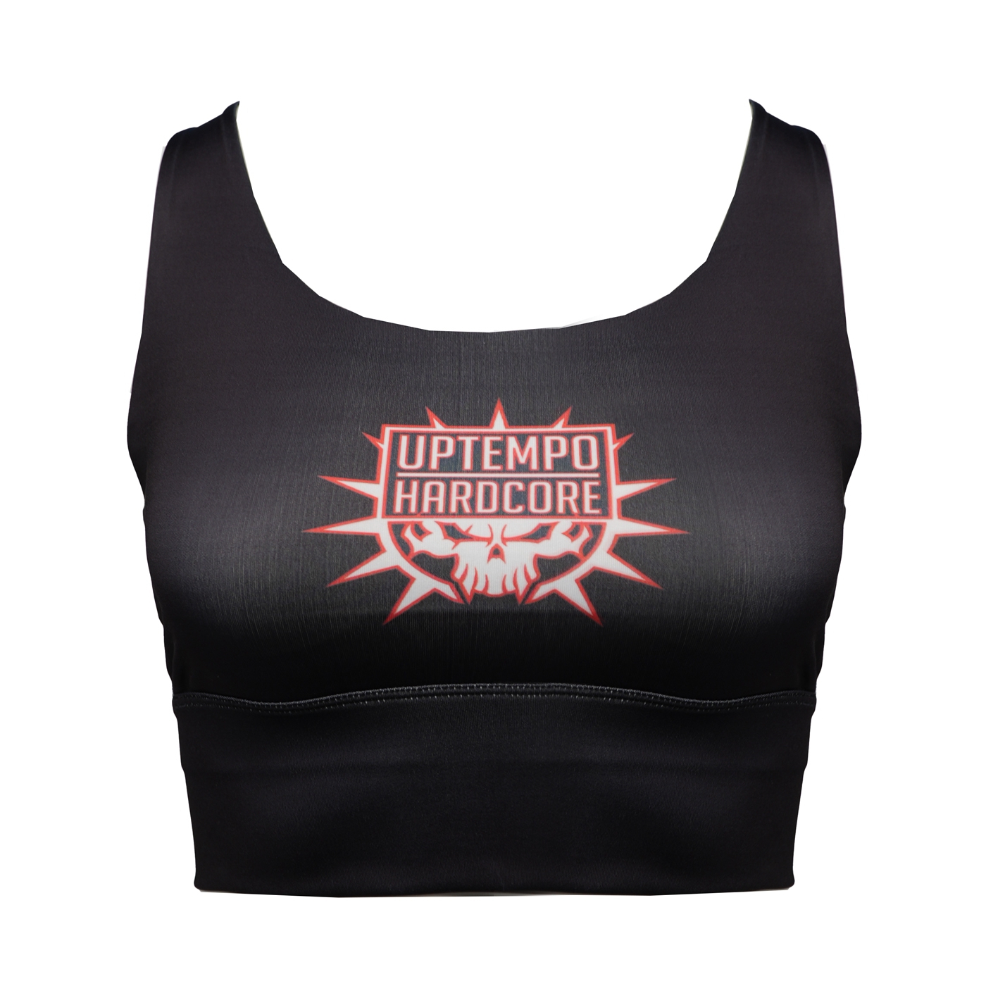Uptempo Harcore Sport Top. This sport top comes with removable padding and a longer length for a flattering fit, offering comfort, coverage, and breast support. Please note, the print may stretch depending on your bust size, so be sure to check our size chart to find your perfect fit.