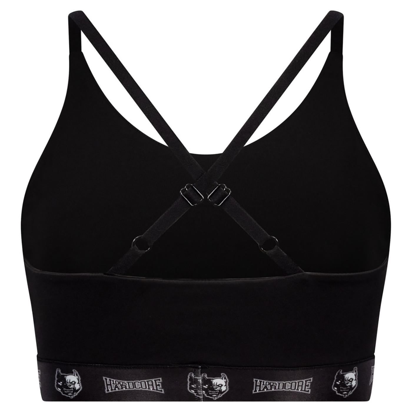 This 100% Hardcore sports top is black with a black band embroidered with 100% hardcore.