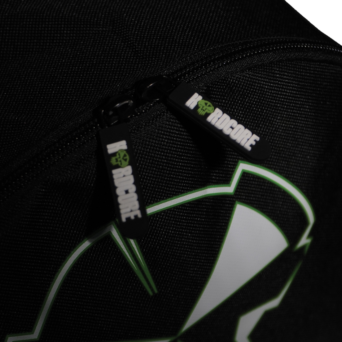 Green zippers with the text "Hardcore".