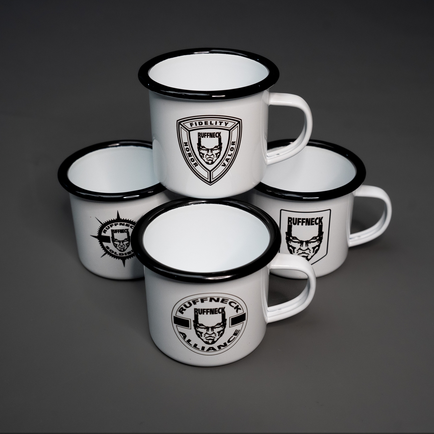 There is a 4th exclusive design, featuring the legendary Ruffneck Soldier logo, but this is NOT available for purchase. It is a free reward for those who go all-in and order all three mugs together.