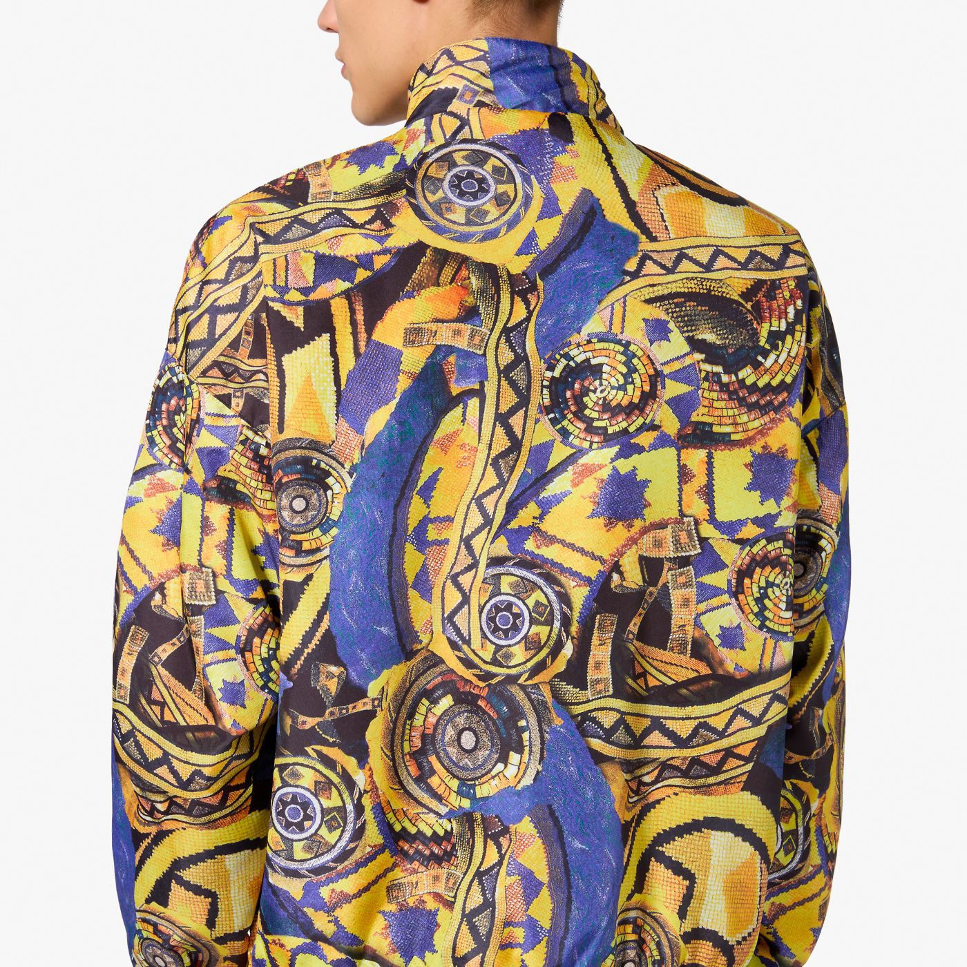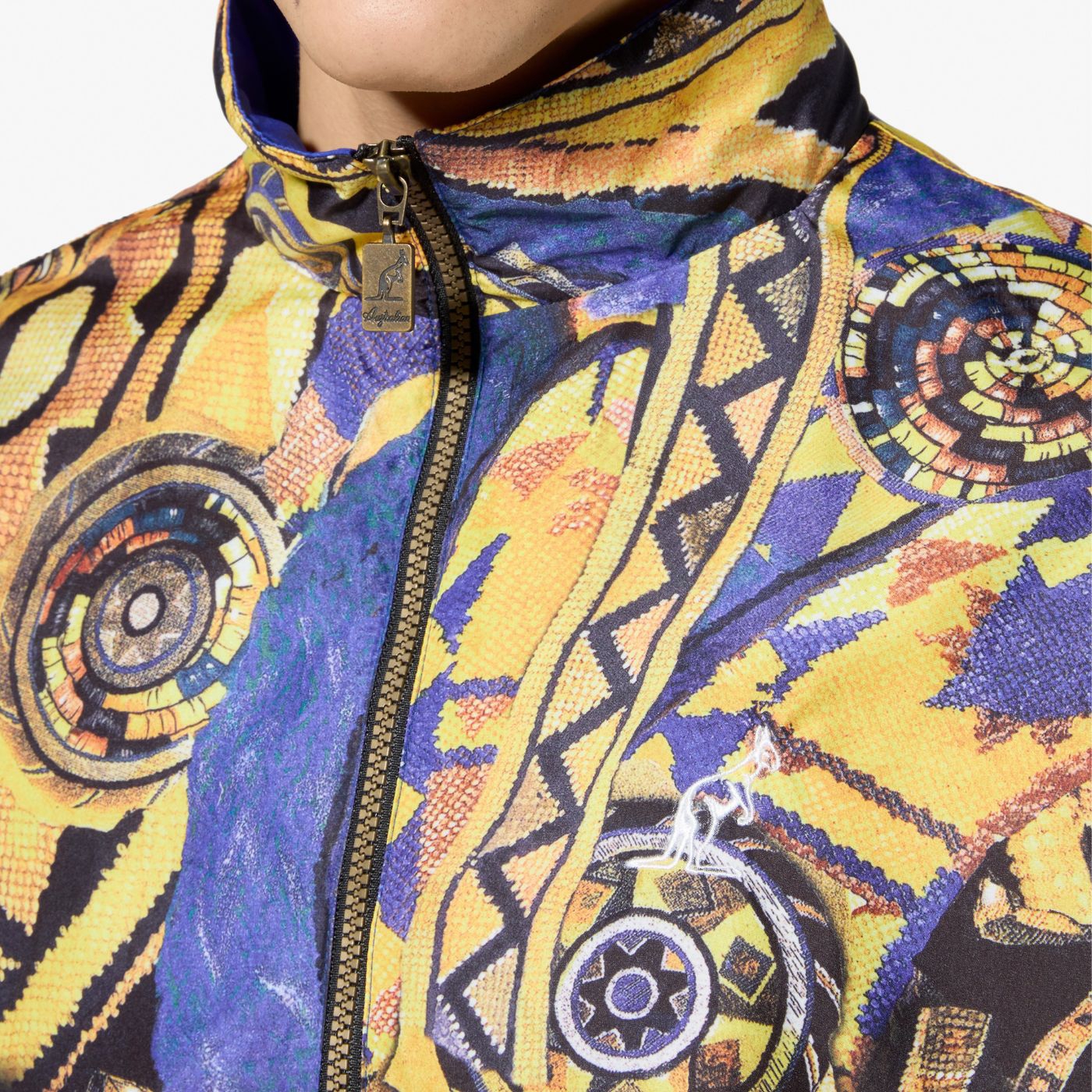 A dynamic jacket designed for bold personalities. Made from ultra-lightweight "smash" fabric, it offers a comfortable fit and features a full front zipper. The all-over print covers the entire jacket, while the inside of the collar remains solid-colored for a sleek contrast.