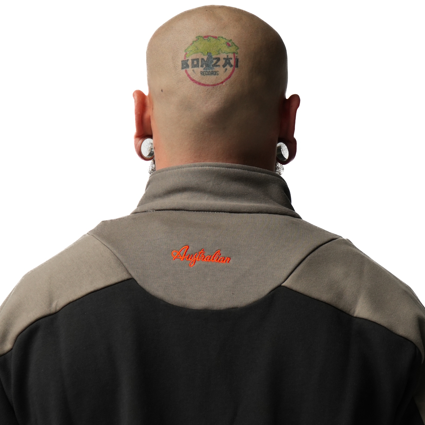 The smooth base fabric contrasts with the textured Sabrinda panels, creating a bold, layered look. Finished with a metal half-zip at the chest and the embroidered Australian logo on the front.