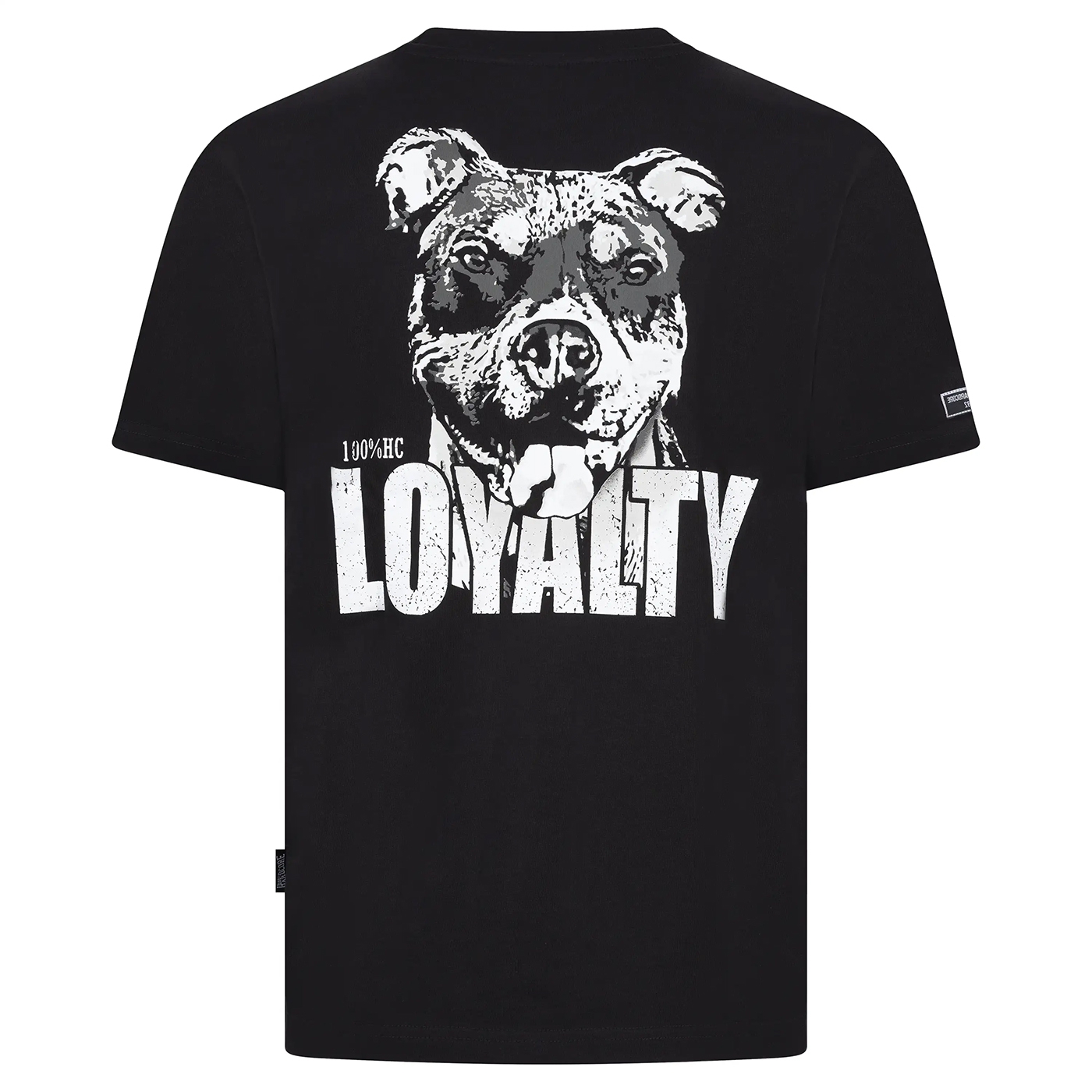 The 100% Hardcore “Loyalty” T-shirt is a tribute to Mellow. The iconic four-legged model of 100% Hardcore, who has been part of the brand since his puppy days in 2018. In the spring of 2025, Mellow’s journey came to an end, but his spirit lives on in this design. The bold LOYALTY print represents the unmatched devotion that dogs show to their owners – the same devotion and loyalty that embody the true gabber lifestyle.