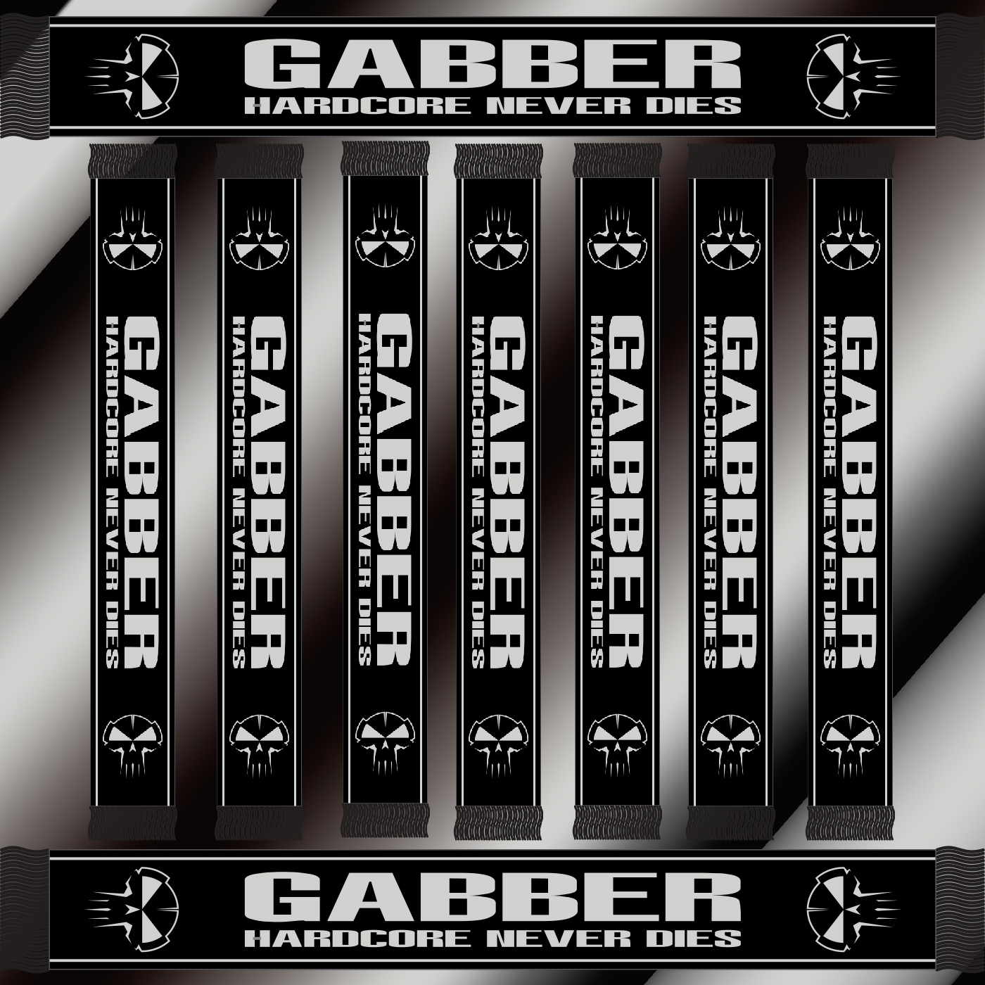 Classic football-style scarf in grey and black with big GABBER inscription. Double-sided, warm, and made for the true hardcore heads. Size 140x17 cm.