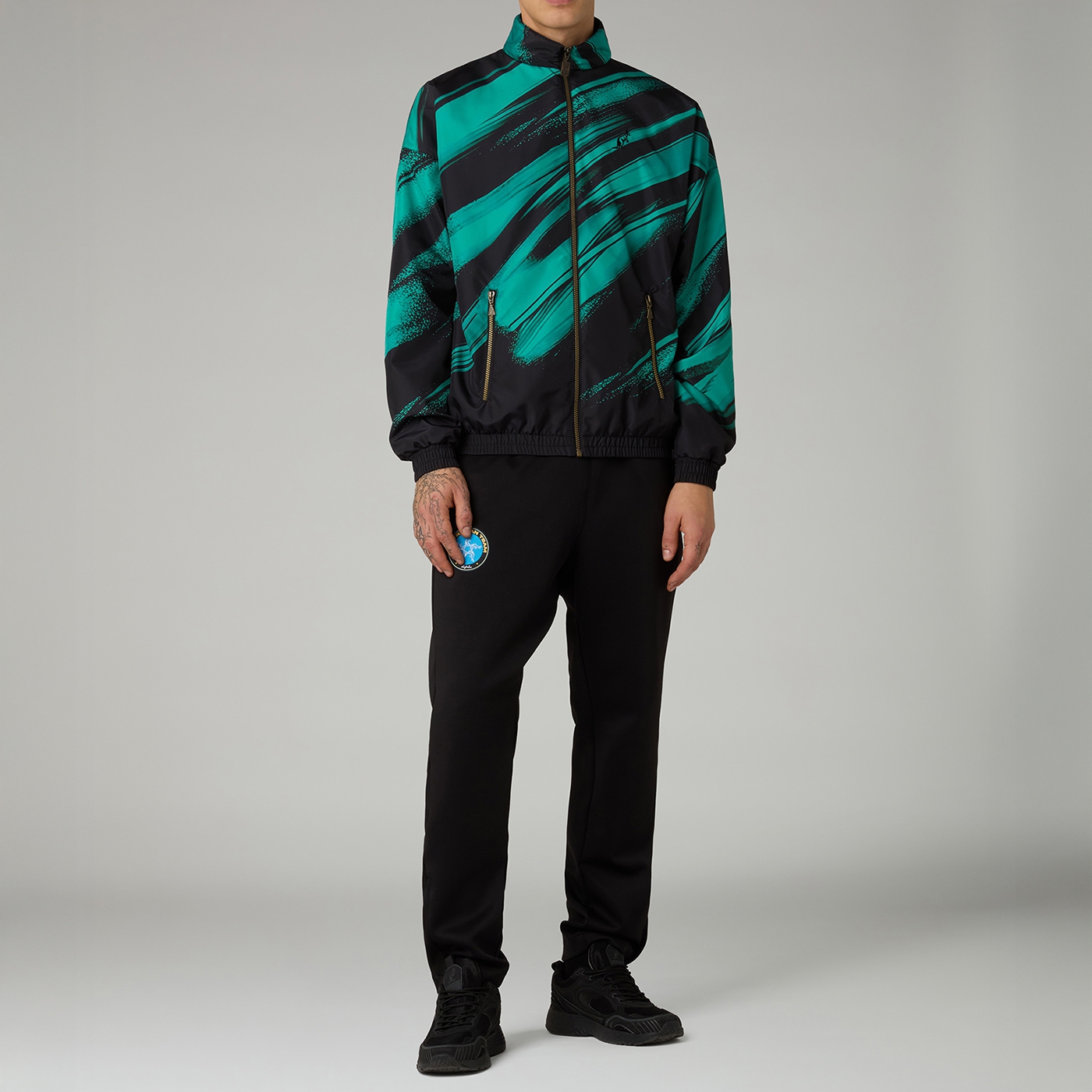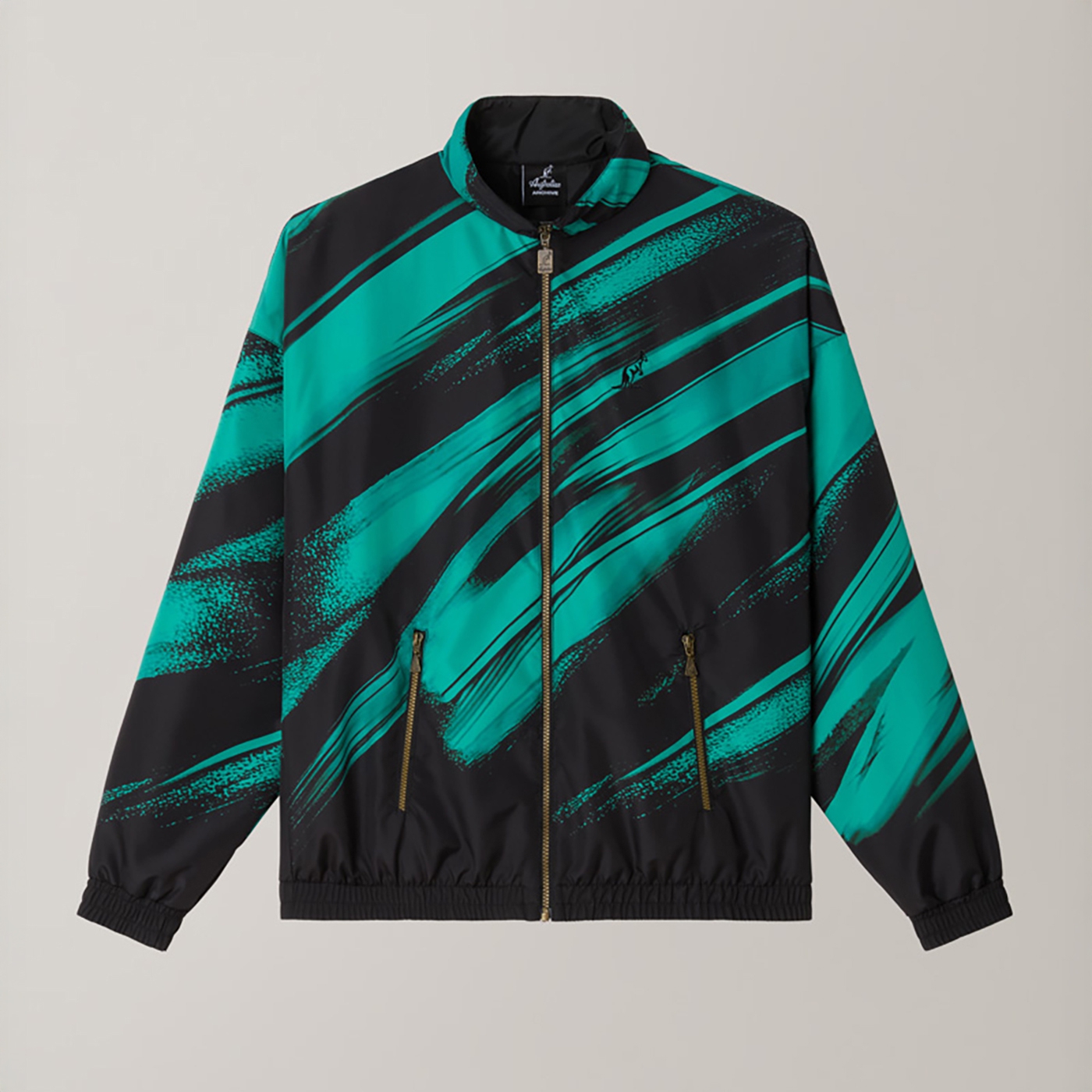Built for those who wear their energy on their sleeve, the Australian Archive Print Jacket Brush is an instant statement piece with deep roots in hardcore and gabber culture. The all-over sublimation print features dynamic teal brushstroke accents across a deep black base, channeling the raw, unapologetic attitude of the scene while blending old-school influences with a sharp, contemporary edge.