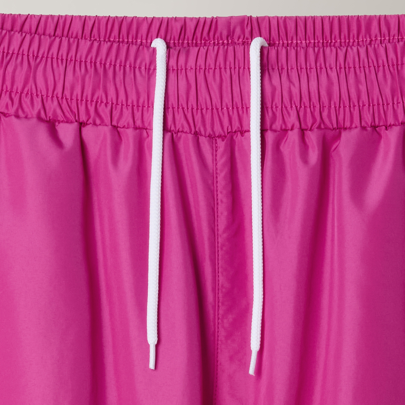 Bright pink Australian parachute pants with a lighter pink text logo and bold red kangaroo emblem. Made from lightweight fabric for smooth comfort and everyday wear. Features an elastic waistband with drawstring, mesh lining for breathability, slanted side pockets, ankle zippers, and elastic cuffs for a clean, modern streetwear fit.