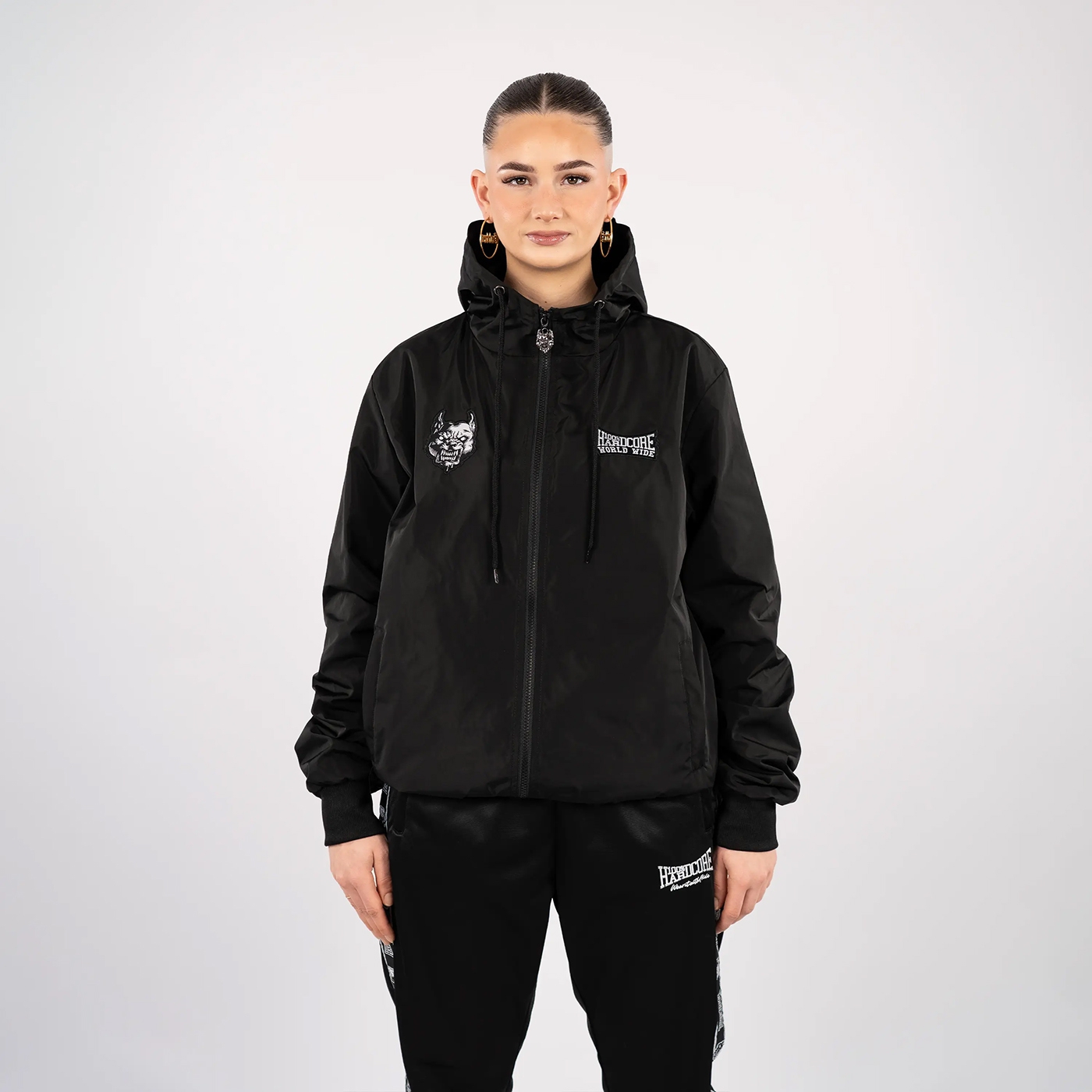 This unisex windbreaker features two zippered pockets for securely storing items and is fully embroidered for a luxurious finish. The hood features adjustable drawstrings, while the elastic cuffs ensure a snug and comfortable fit. Designed for everyday use, it offers lightweight protection and a sleek, functional look suitable for both men and women.