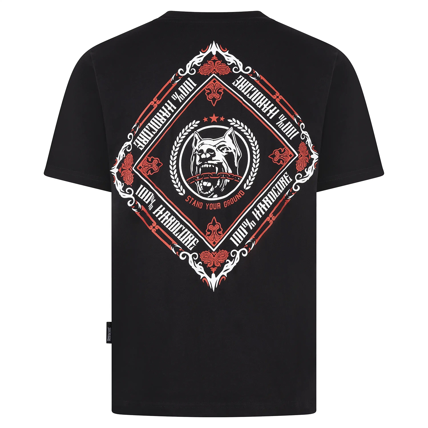 Be part of the hardcore scene with the 100% Hardcore T-Shirt Bandana. Made from high-quality cotton and featuring an embroidered logo on the front and a bandana print on the back.