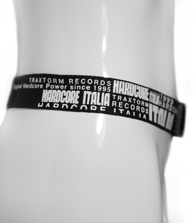 - Hardcore Italia/Traxtorm white scripts print on strap.