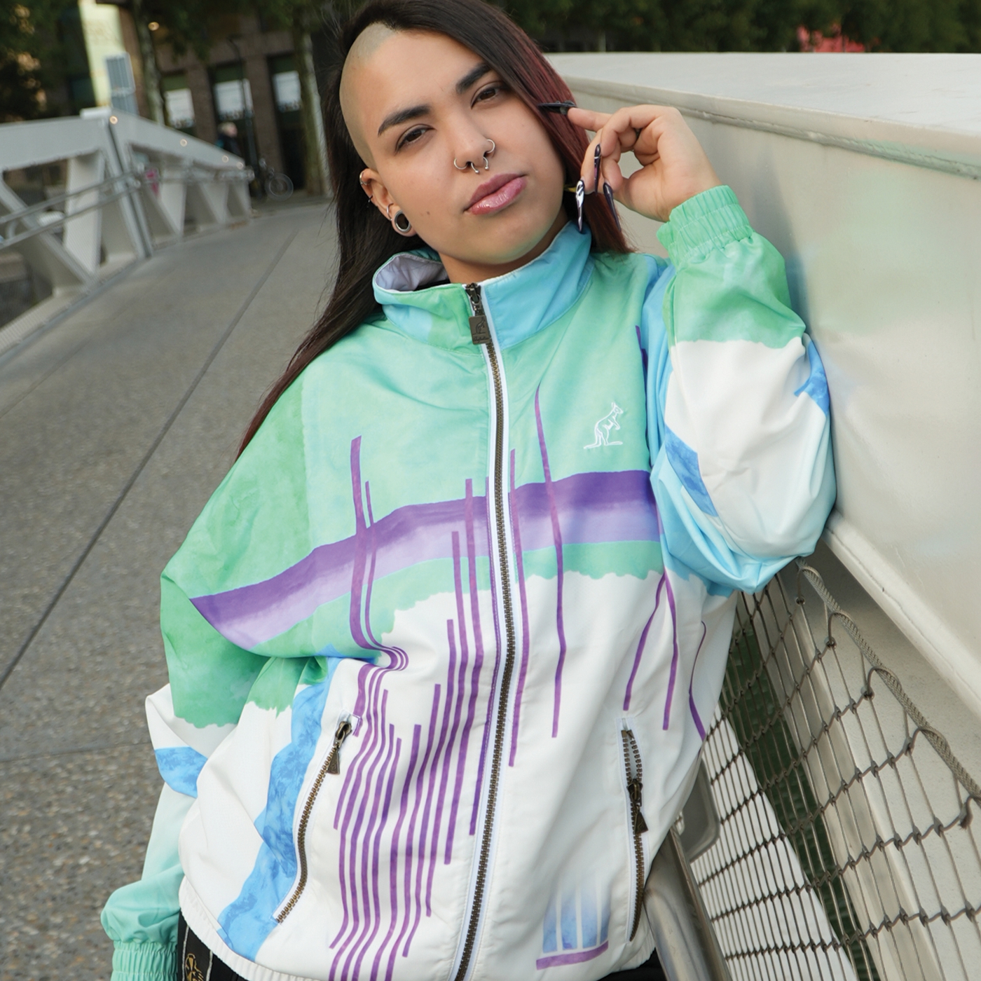 Step into the 90s with a modern twist. The Gora edition features a pastel mix of green, blue, and purple in a bold all-over print. Finished with embroidered Australian logos and silver zipper details, this limited-edition jacket blends retro energy with today’s style. Part of the exclusive Archive Collection – made for true gabbers and hardcore fans.