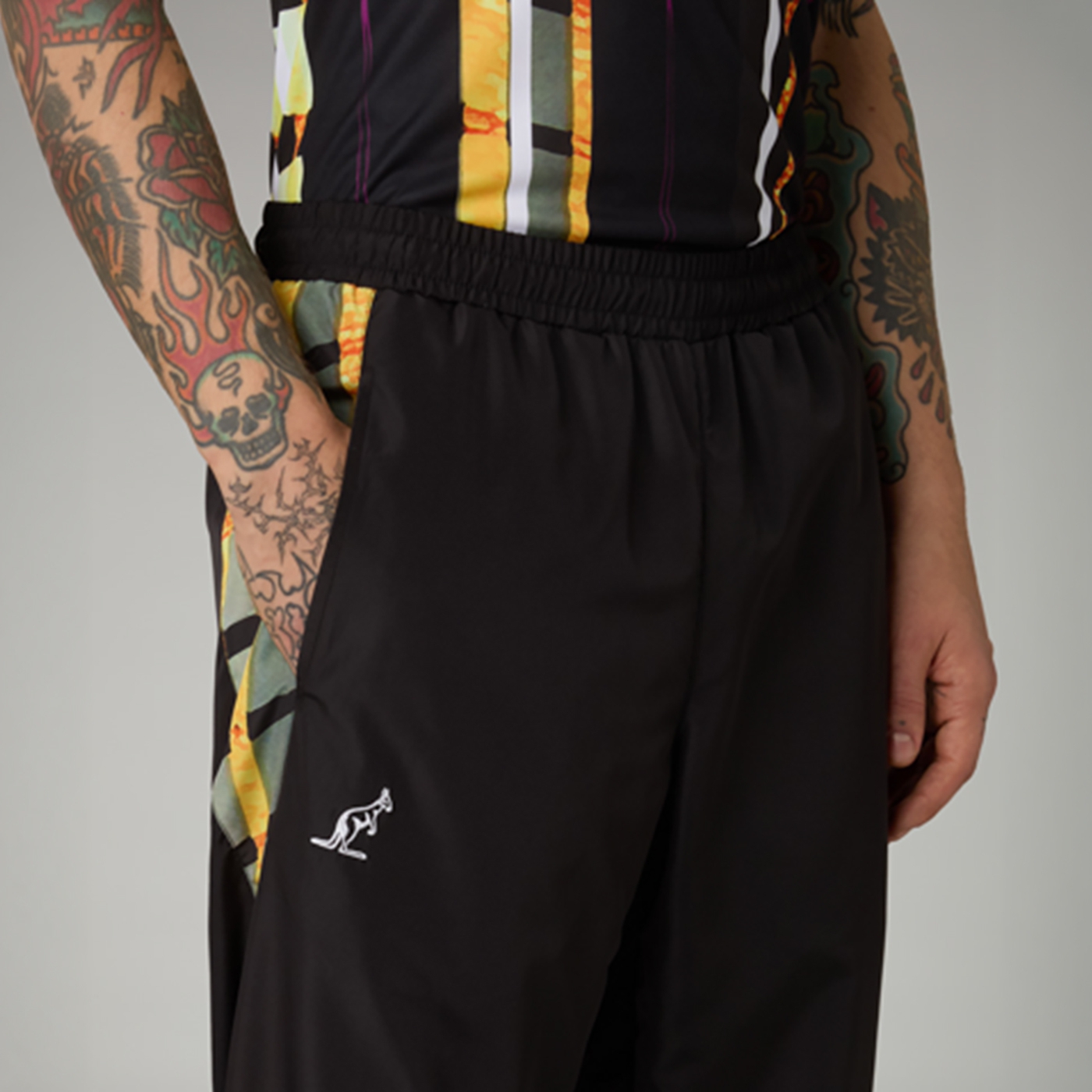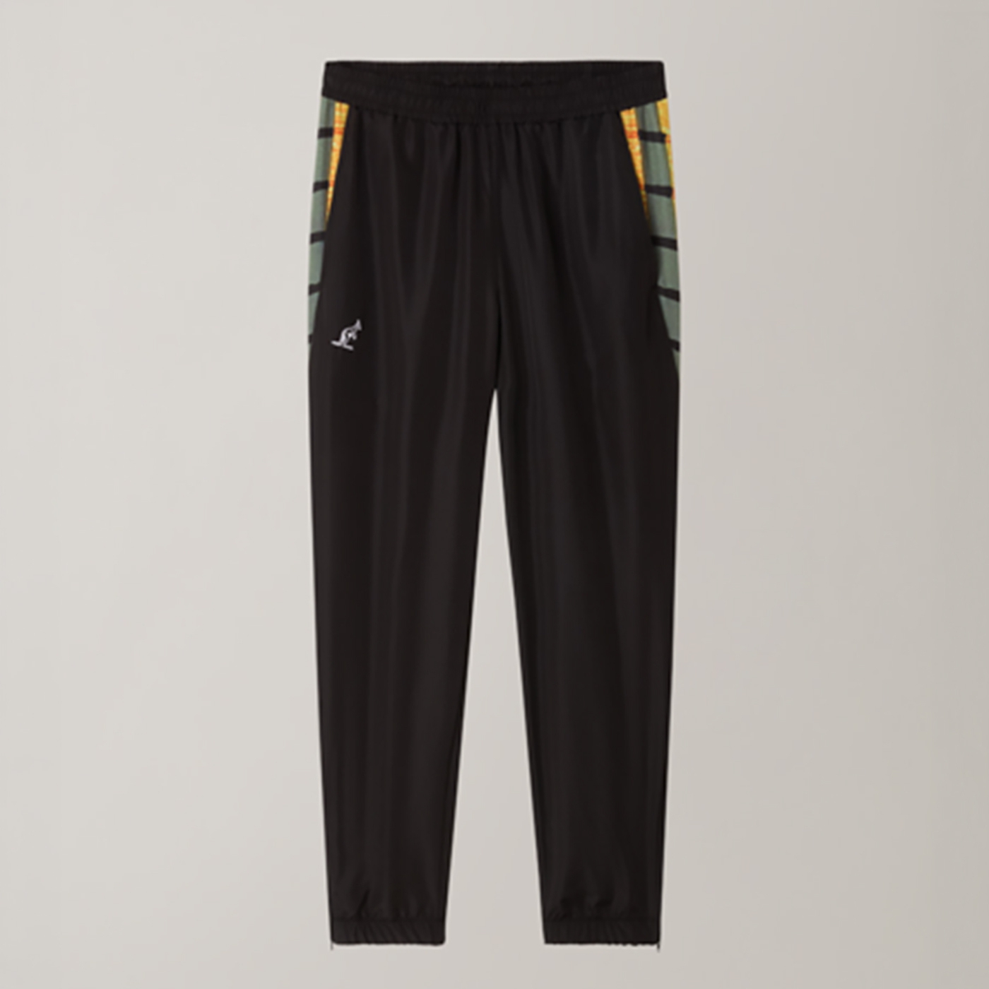 The black base is enhanced by gold-yellow accents in the side V inserts, made from printed Brice fabric. This contrast gives the trousers a dynamic look that perfectly matches the character of the Brice collection. The trousers are made from lightweight Brice fabric and fully lined with mesh for extra comfort and ventilation. The elasticated waistband with adjustable drawstring ensures a comfortable, personalised fit. Thanks to the elastic at the bottom and the zips at the ankles, the trousers fit nicely and retain their sleek, sporty silhouette. The side pockets make the design practical for everyday use. The embroidered Australian logo on the leg adds a recognisable detail and underlines the brand's iconic sporting heritage.