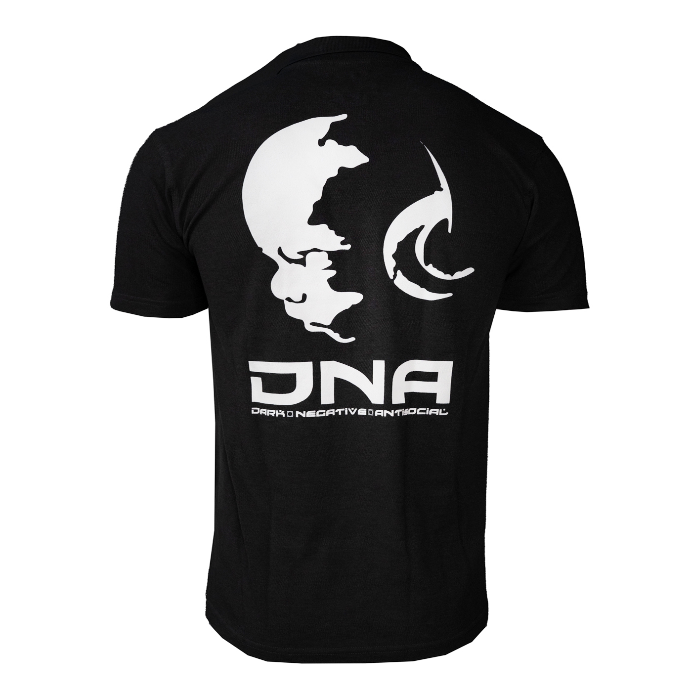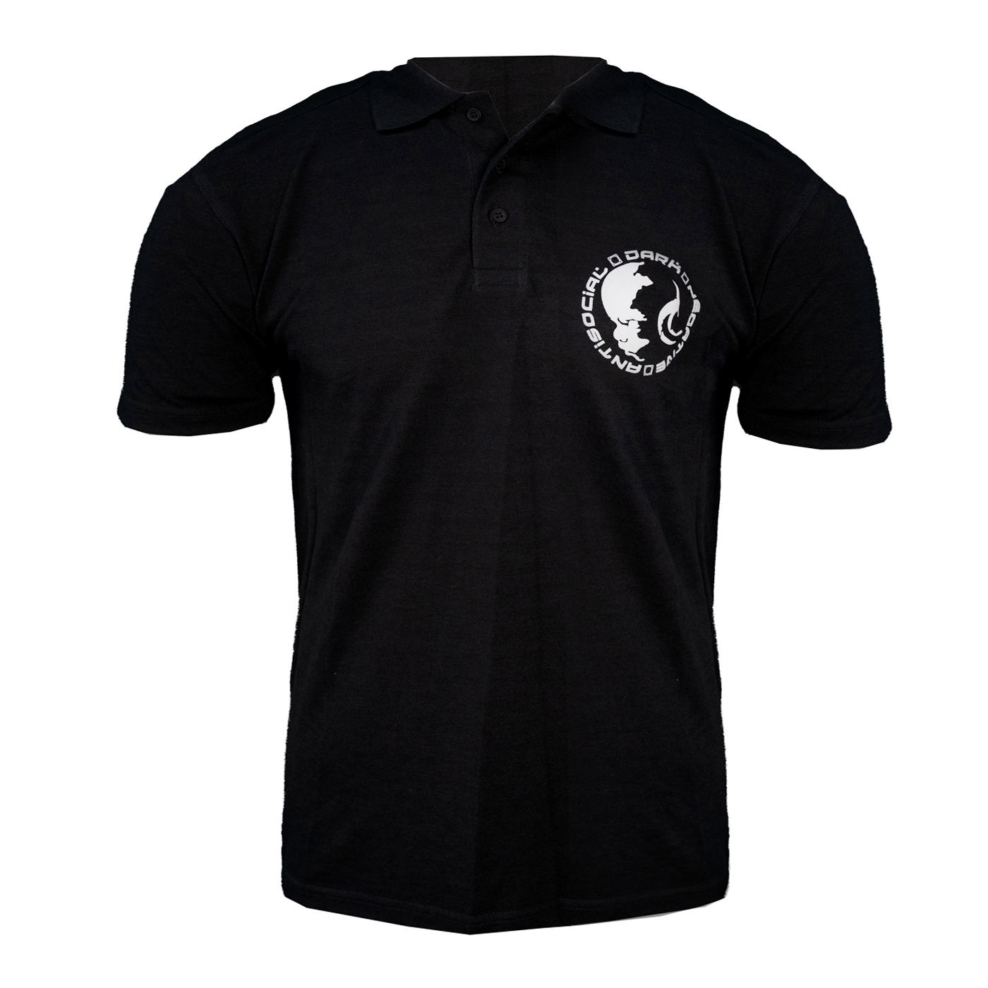 Black DNA polo printed. DNA-logo and 'dark negative antosocial' printed on the front. Big DNA-logo and 'DNA - dark negative antisocial' printed on the back.