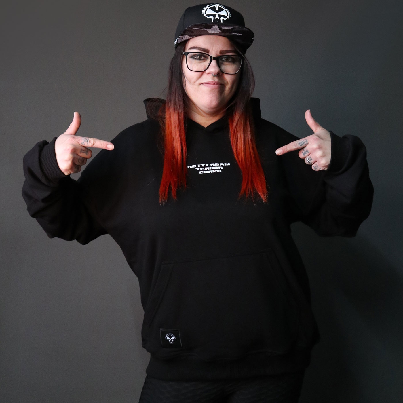 The back of the hoodie features a bold and eye-catching Rotterdam Terror Corps logo, printed with puff ink for a 3D effect. The front of the hoodie boasts the iconic RTC inscription.