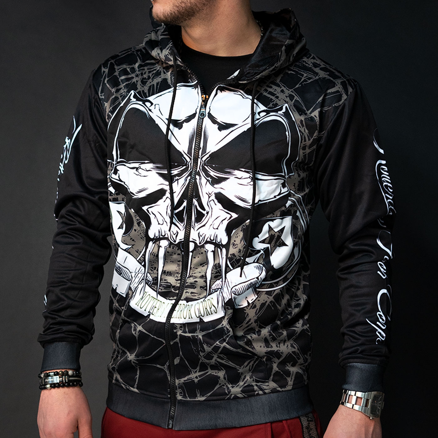Rotterdam Terror Corps shattered glass hooded trainings jacket! This high quality all over full colour printed jacket is a must have for the real Rotterdam Terror Corps fans.