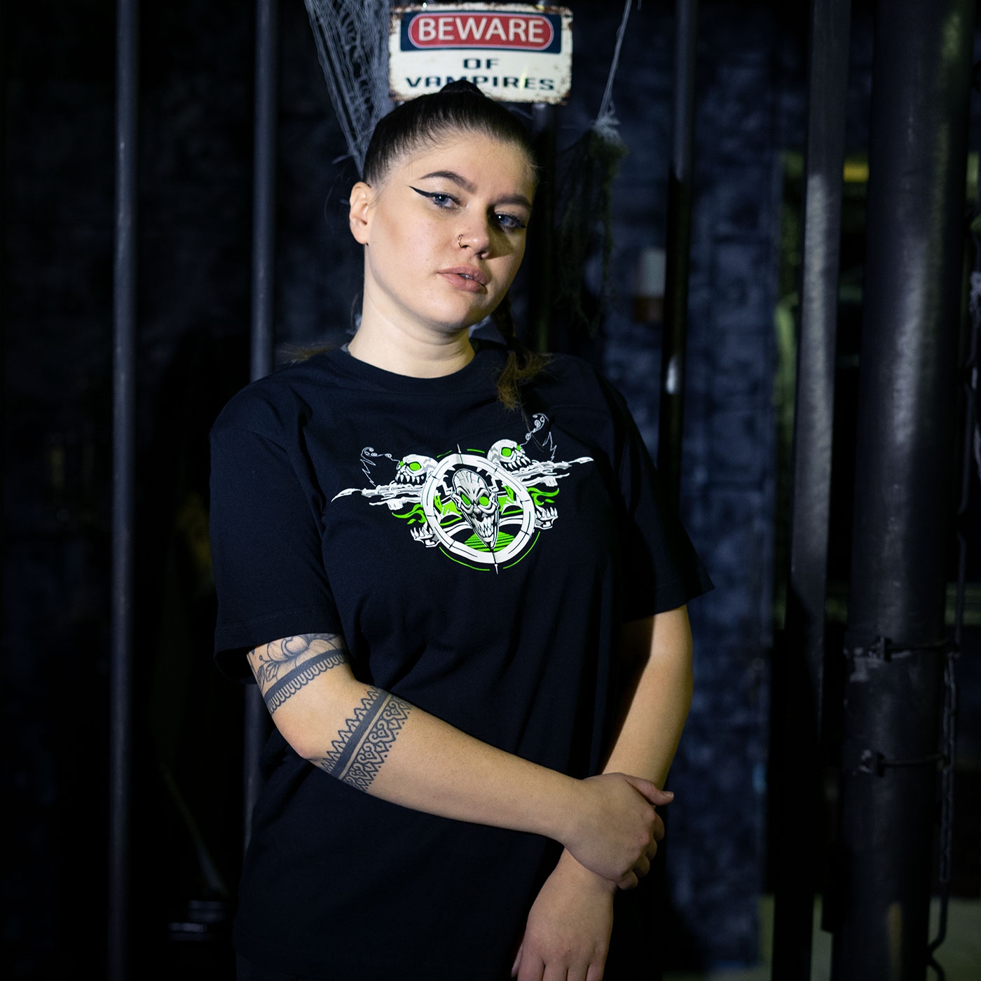 Black CSR with print on the front and 'Old School Terror" print on the back.