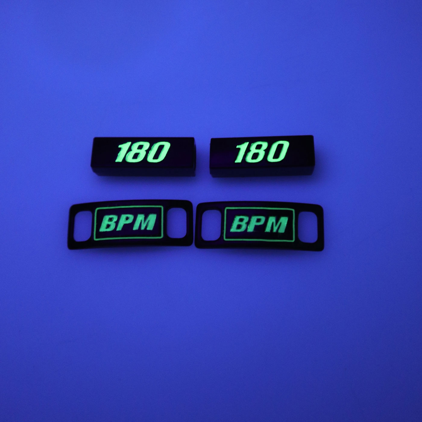 4 pieces: 2 with BPM inscription and 2 with 180. Glowing in the dark!
