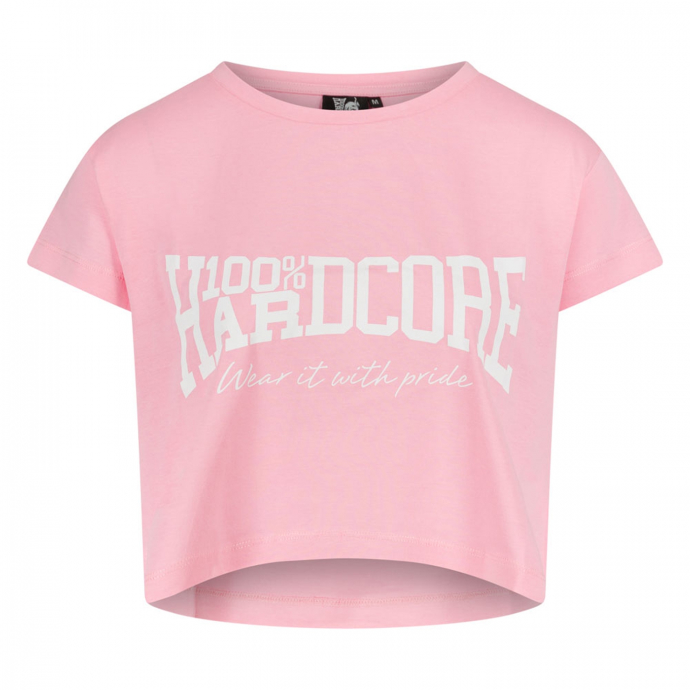 Beautiful crop top for the girls. With a large print of the 100% Hardcore brand logo on the front. On the back of the neck is the same logo, but small.