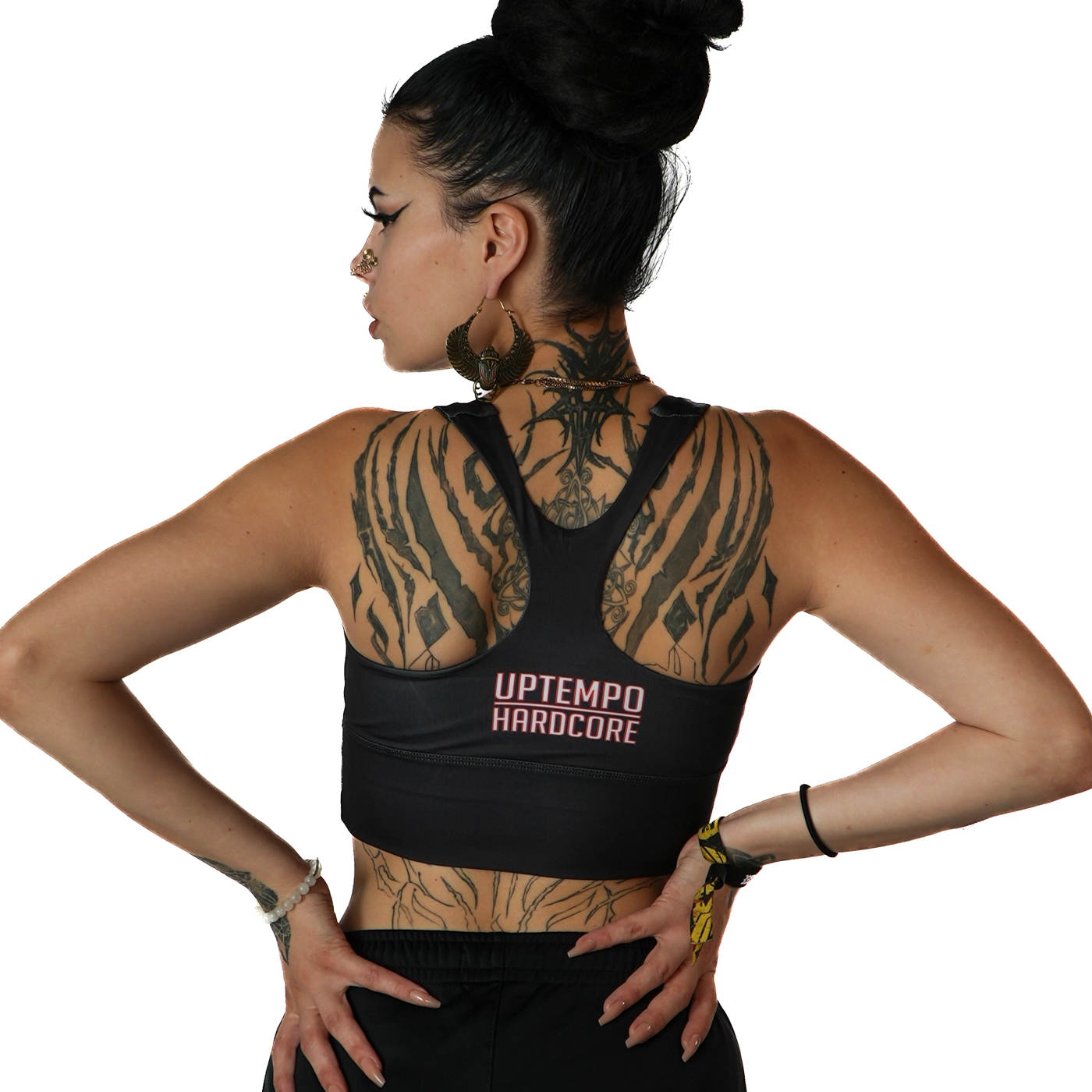 Uptempo Harcore Sport Top. This sport top comes with removable padding and a longer length for a flattering fit, offering comfort, coverage, and breast support. Please note, the print may stretch depending on your bust size, so be sure to check our size chart to find your perfect fit.