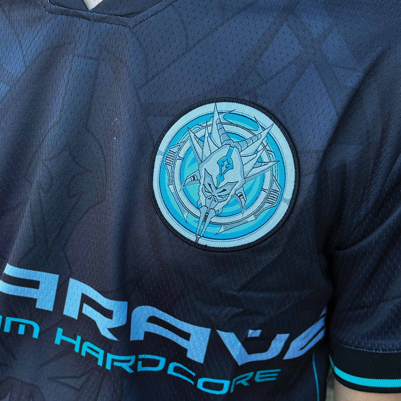 Soccer shirt crafted from breathable, lightweight fabric, featuring the official Megarave 2025 Millennium logo in a stunning aqua-blue all-over design with a matching front patch.