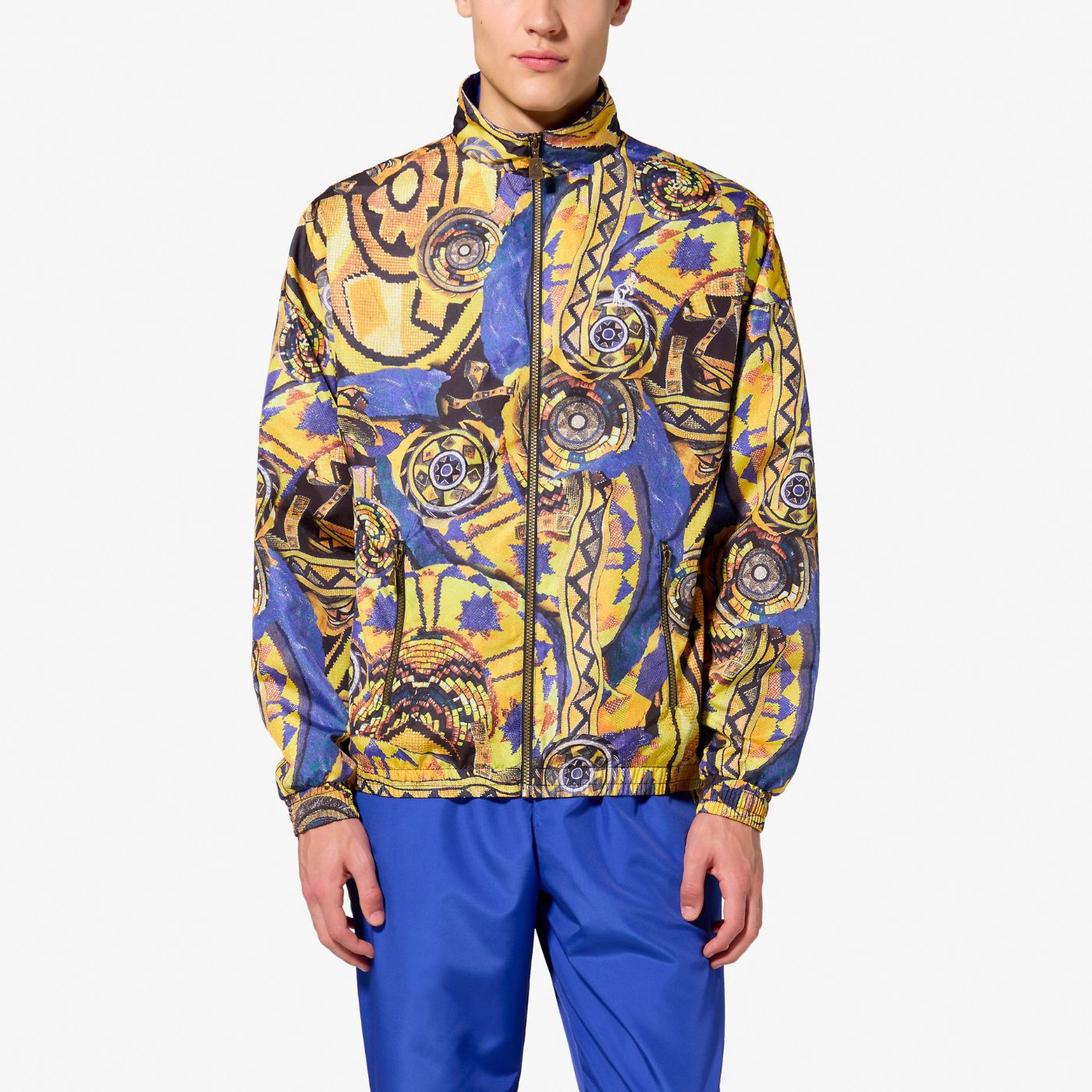 A dynamic jacket designed for bold personalities. Made from ultra-lightweight "smash" fabric, it offers a comfortable fit and features a full front zipper. The all-over print covers the entire jacket, while the inside of the collar remains solid-colored for a sleek contrast.