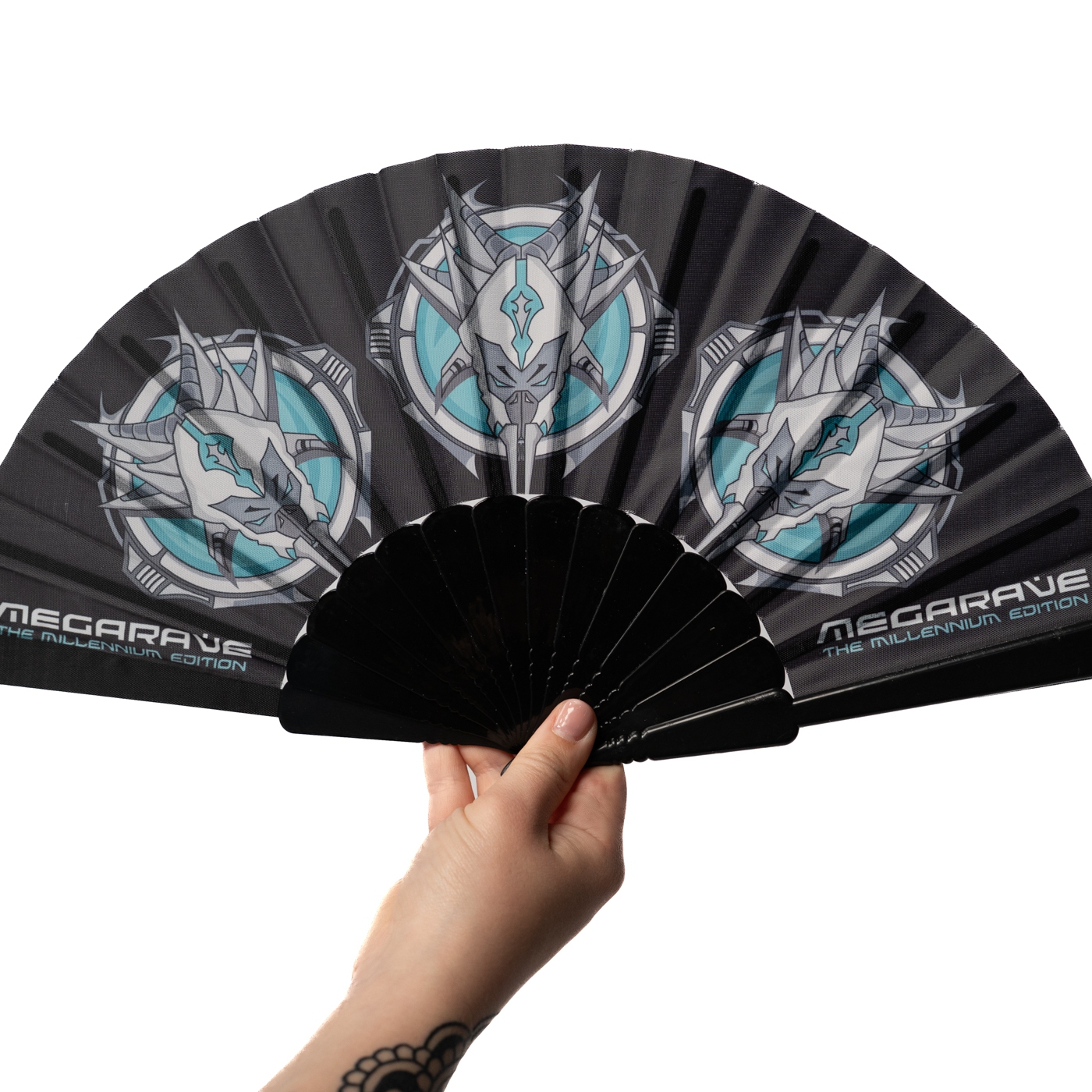 High-quality fan featuring the Megarave Millennium design with the 2025 color logo.