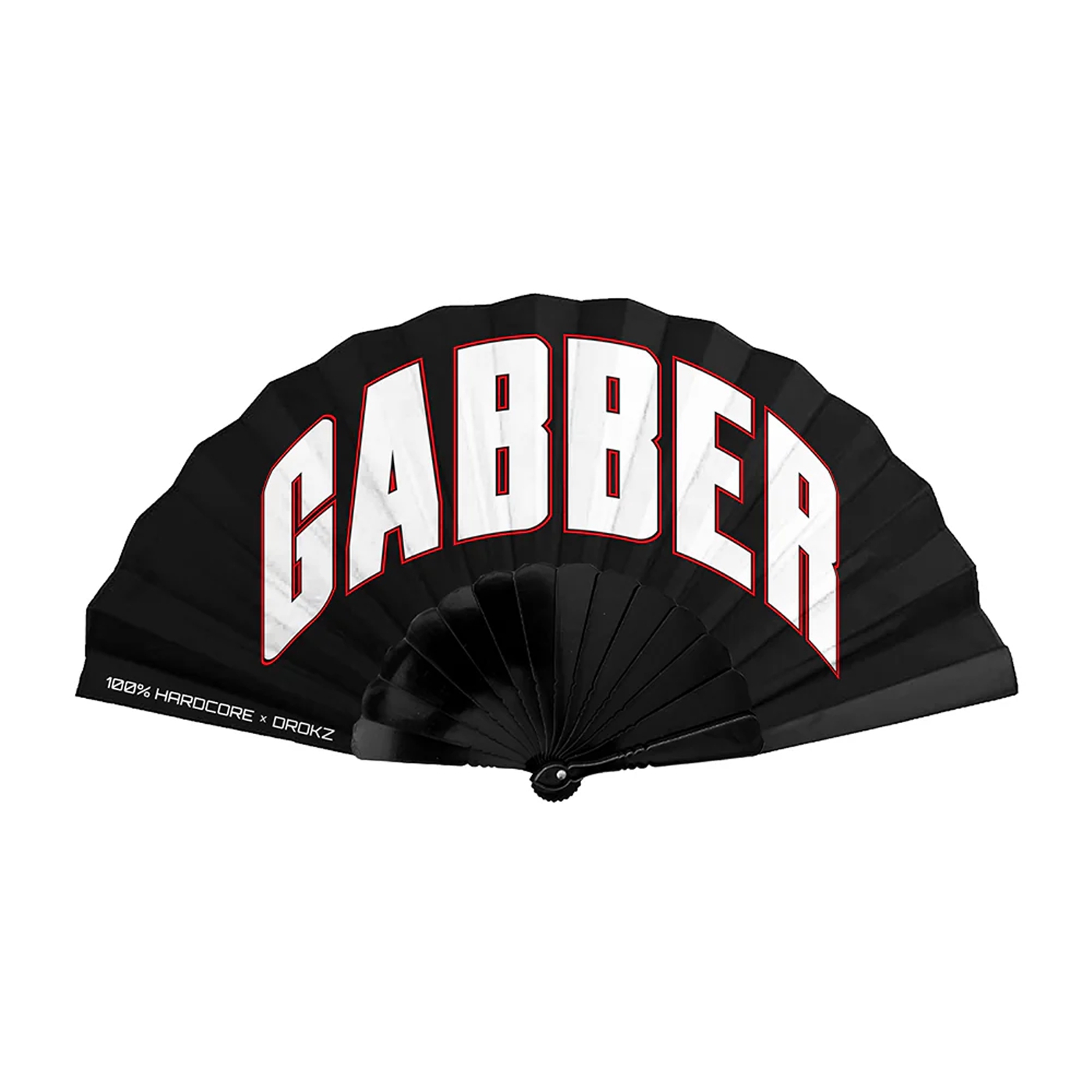 Premium handheld fan featuring the Drokz x Gabber collaboration by 100% Hardcore.