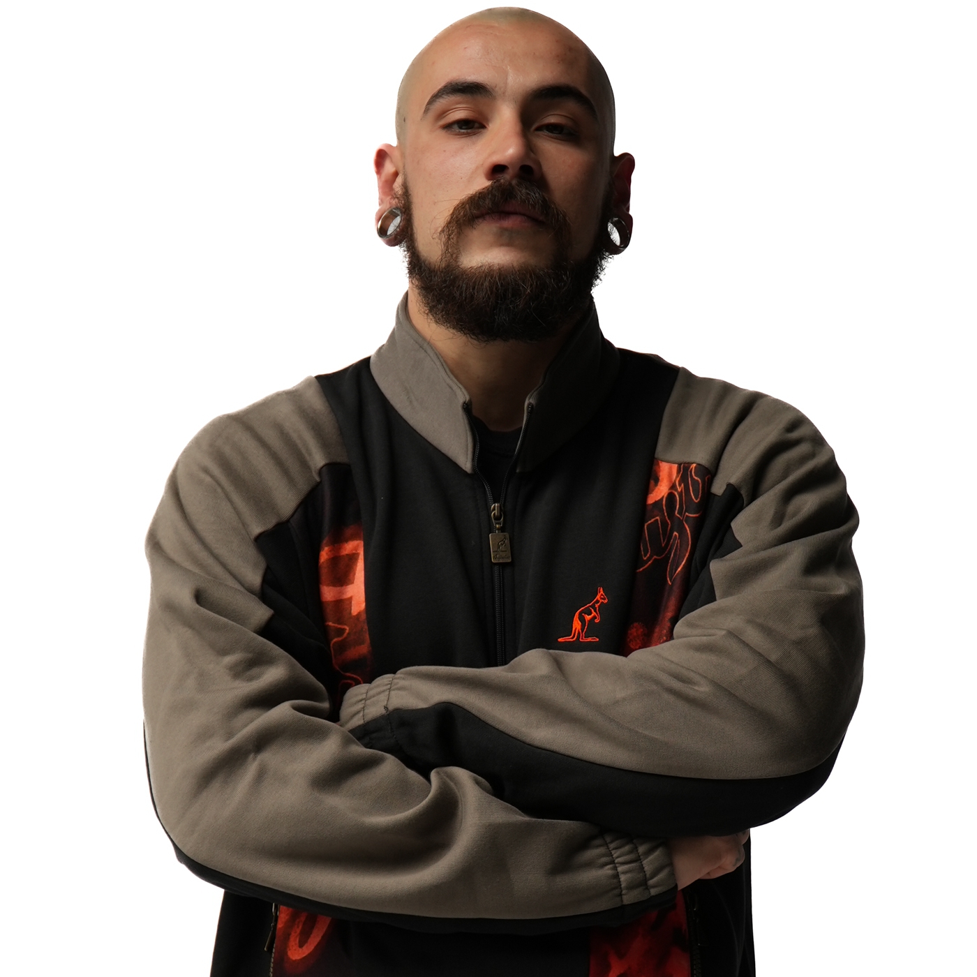 The smooth base fabric contrasts with the textured Sabrinda panels, creating a bold, layered look. Finished with a metal half-zip at the chest and the embroidered Australian logo on the front.