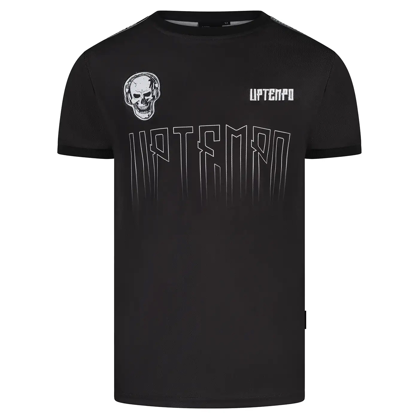 Bold rave vibes with this Uptempo soccer shirt. Features chest patch and embroidery logos, tape detailing on both sleeves, and full sublimation print. Perfect for your next hardcore session.