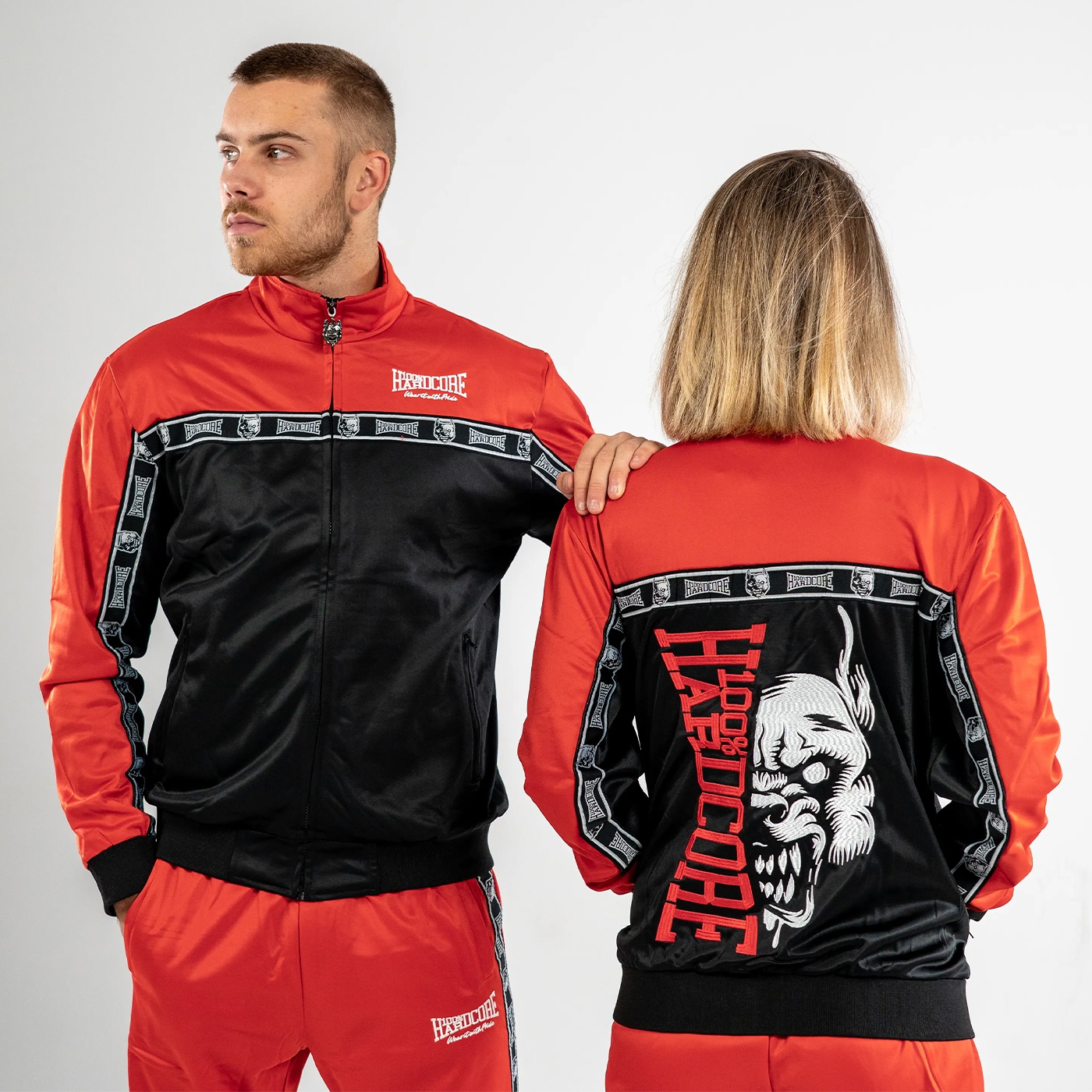 The 100% Hardcore Training Pants are built for comfort, movement, and pure style. Made from improved stretchy 100% polyester fabric, they deliver a perfect fit with woven side borders and logo-detailed zippers for that unmistakable hardcore look.