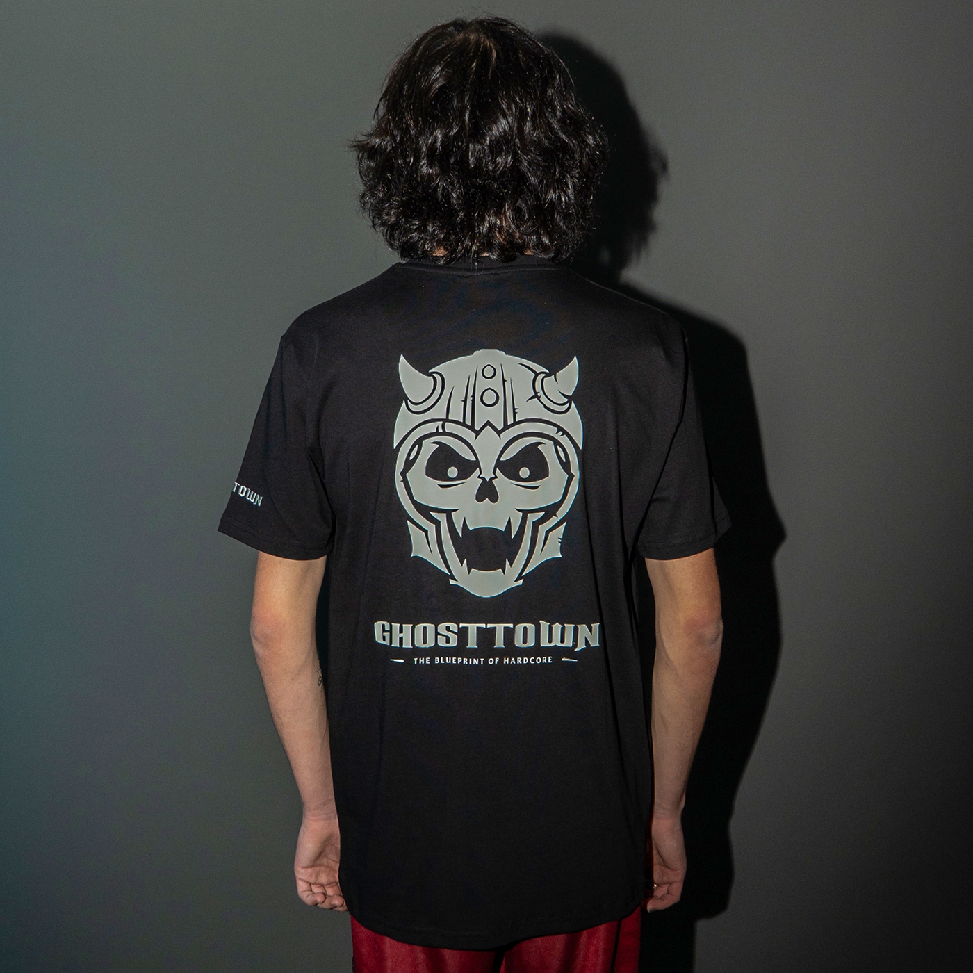 The D2E Ghosttown 2026 T-Shirt features a clean, minimal Ghosttown logo printed on the front with a bold oversized logo on the back. Finished with premium embroidered Ghosttown lettering on the sleeve for a refined streetwear touch.