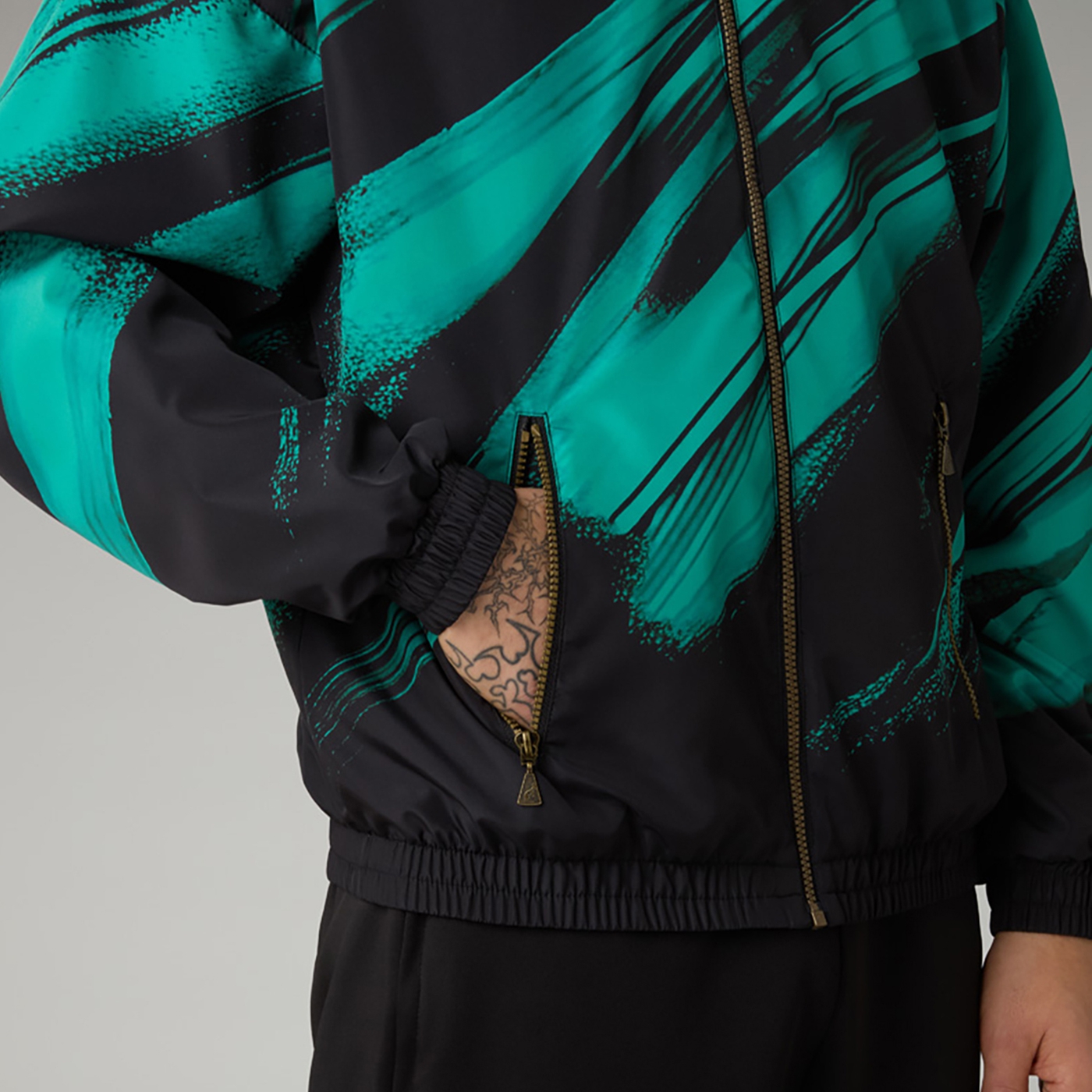 Built for those who wear their energy on their sleeve, the Australian Archive Print Jacket Brush is an instant statement piece with deep roots in hardcore and gabber culture. The all-over sublimation print features dynamic teal brushstroke accents across a deep black base, channeling the raw, unapologetic attitude of the scene while blending old-school influences with a sharp, contemporary edge.