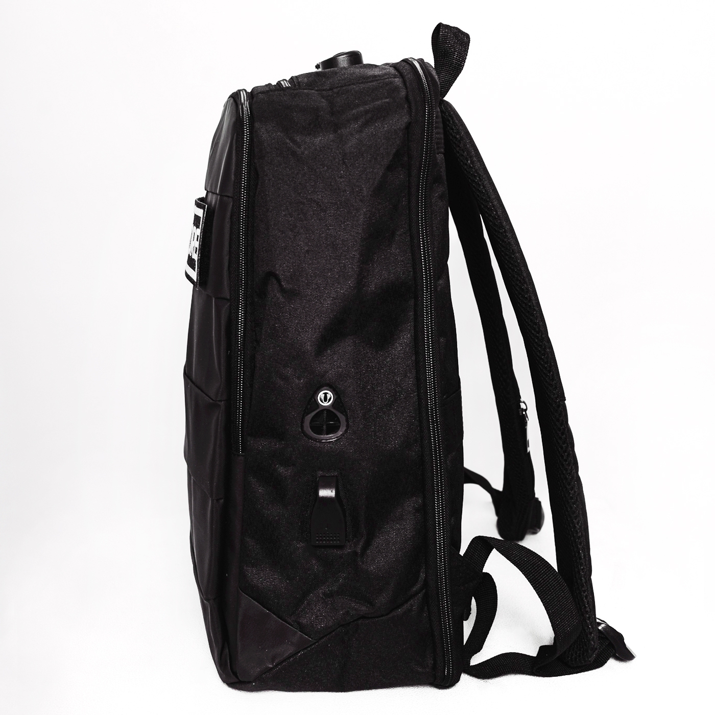 This backpack even has an entrance where you can charge your phone with a power bank and an entrance where you can put your headphone cable through, so that your phone stays dry when it rains.