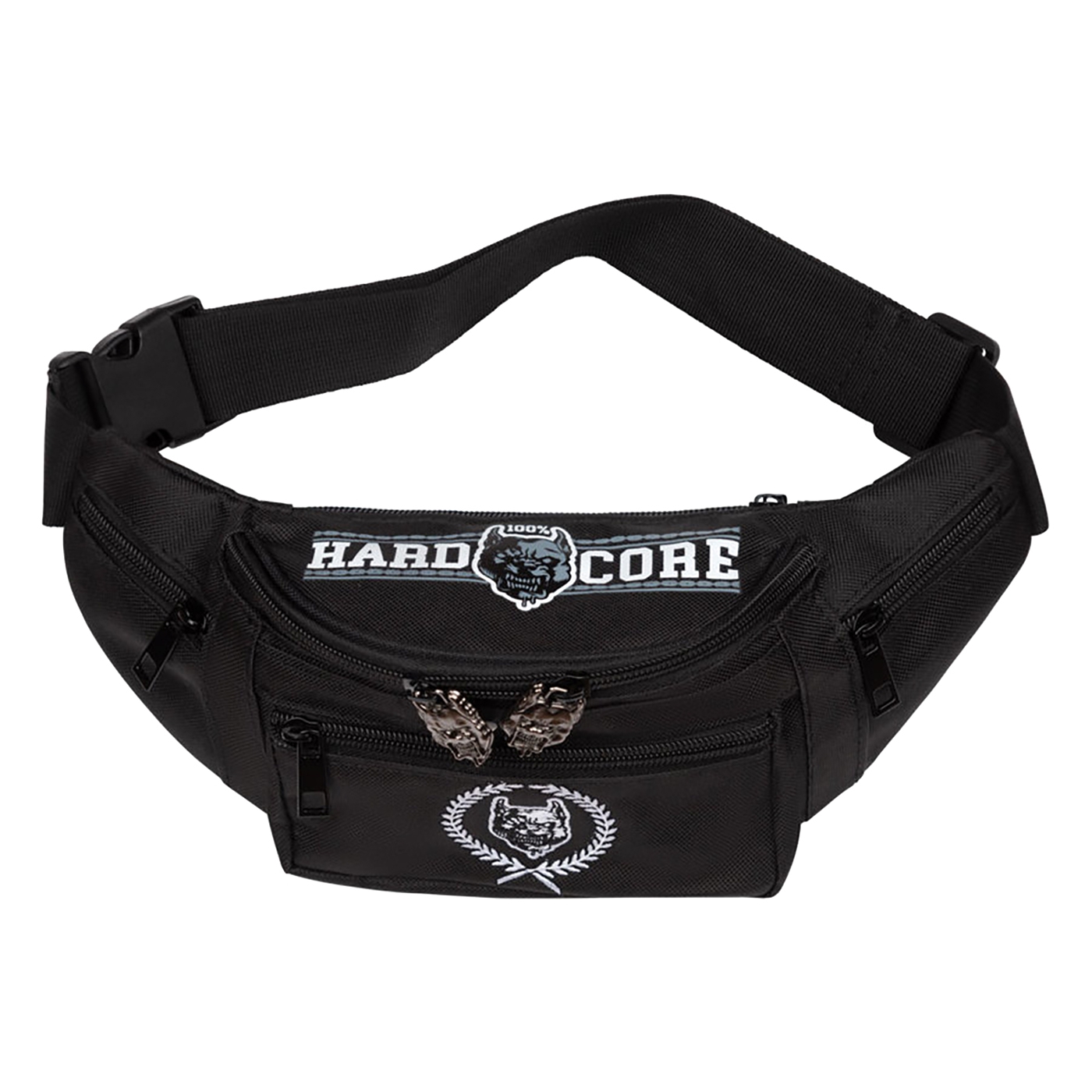 This bag contains 5 zippered storage compartments. 1 pocket is hidden at the back. The length of the strap is adjustable.
