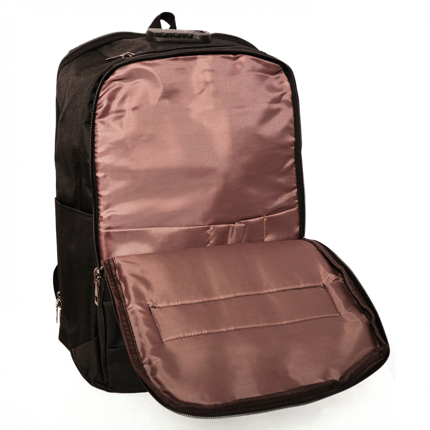 This backpack has no less than 4 zippered storage compartments. In some compartments there are even extra separate storage compartments on the inside.