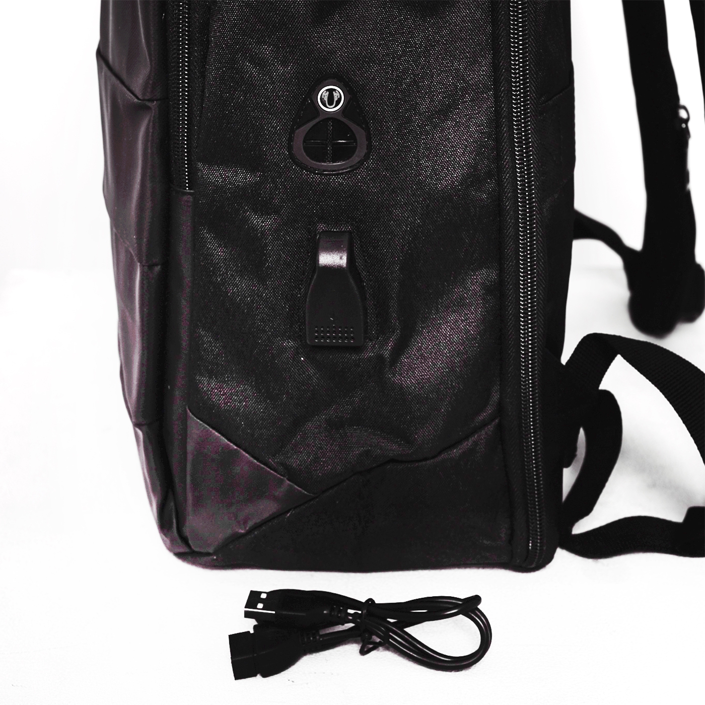 This backpack even has an entrance where you can charge your phone with a power bank and an entrance where you can put your headphone cable through, so that your phone stays dry when it rains.